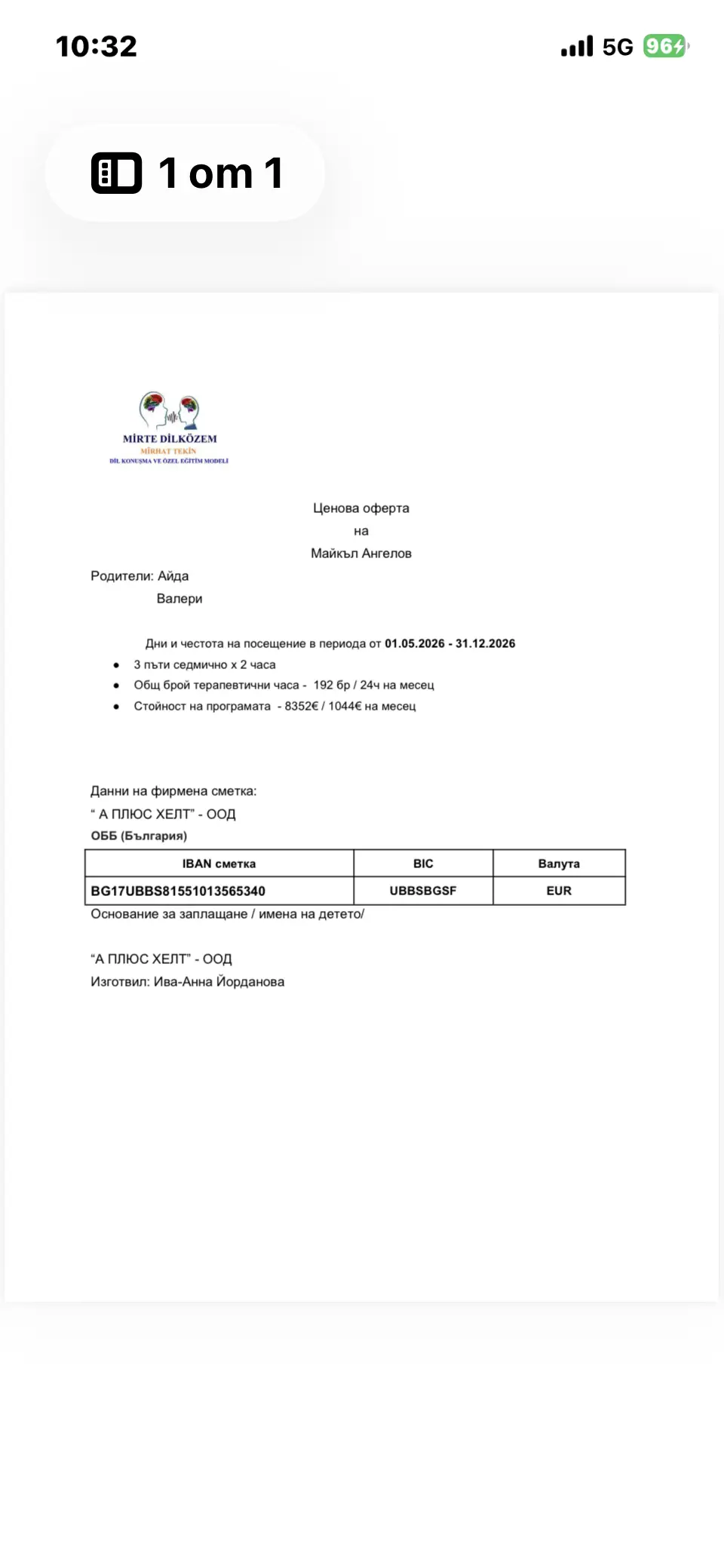 Терапиите на Майкъл се отразяват на този етап доста положително с вяра надежда и подкрепа , имаме препоръка да продължим до края на годината , тъй като с работа и постоянство има шанс за много по добро развитие на потенциала му ! За това е нужна допълнителна сума и ни е изготвена нова продължаваща ценова оферта за терапевтична програма благодаря ❤️🍀