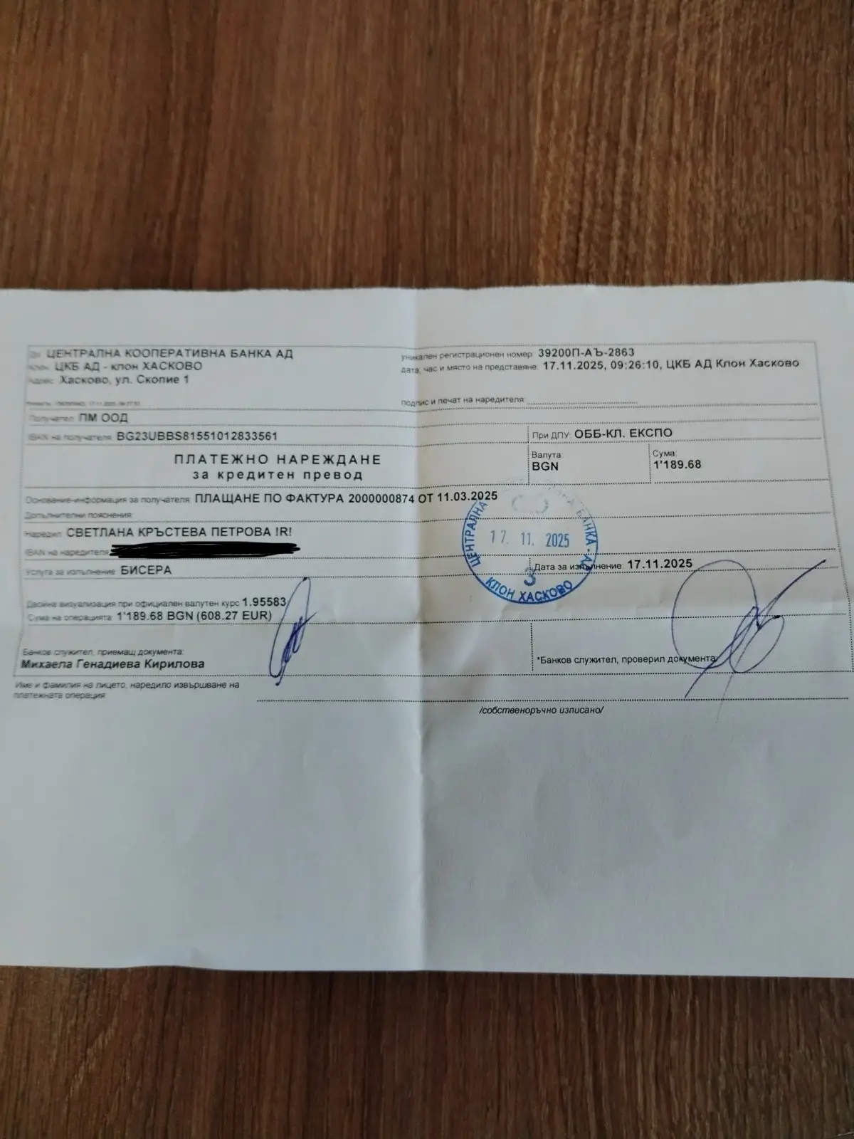 Прилагам платежно нареждане за изплащане на последната фактура.