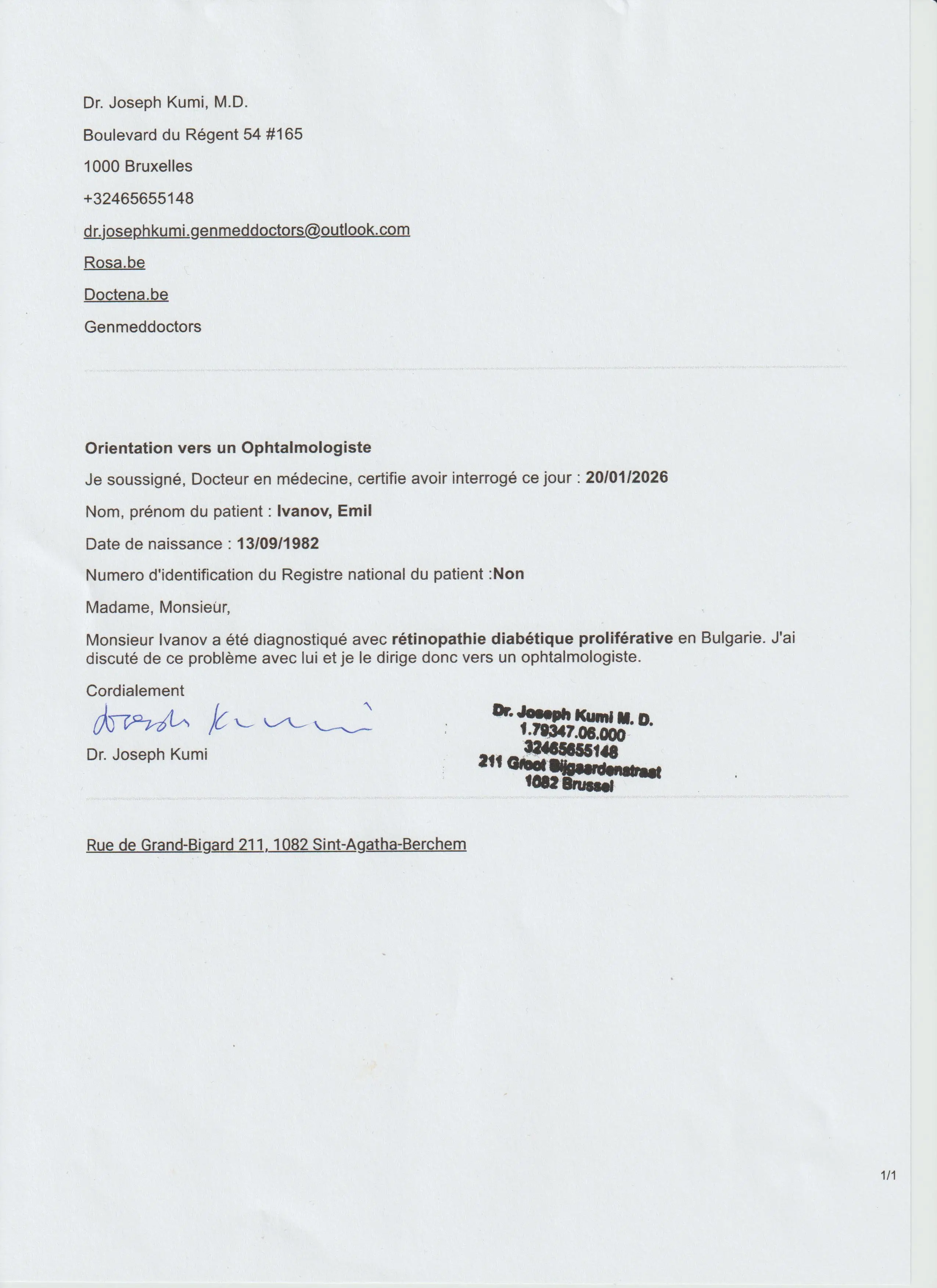 Емо има записан час за контрол на здравето в болница Свети Августин гр. Антверпен след месец и час за посещение при Диабетолог-ендокринолог седмица след това.
