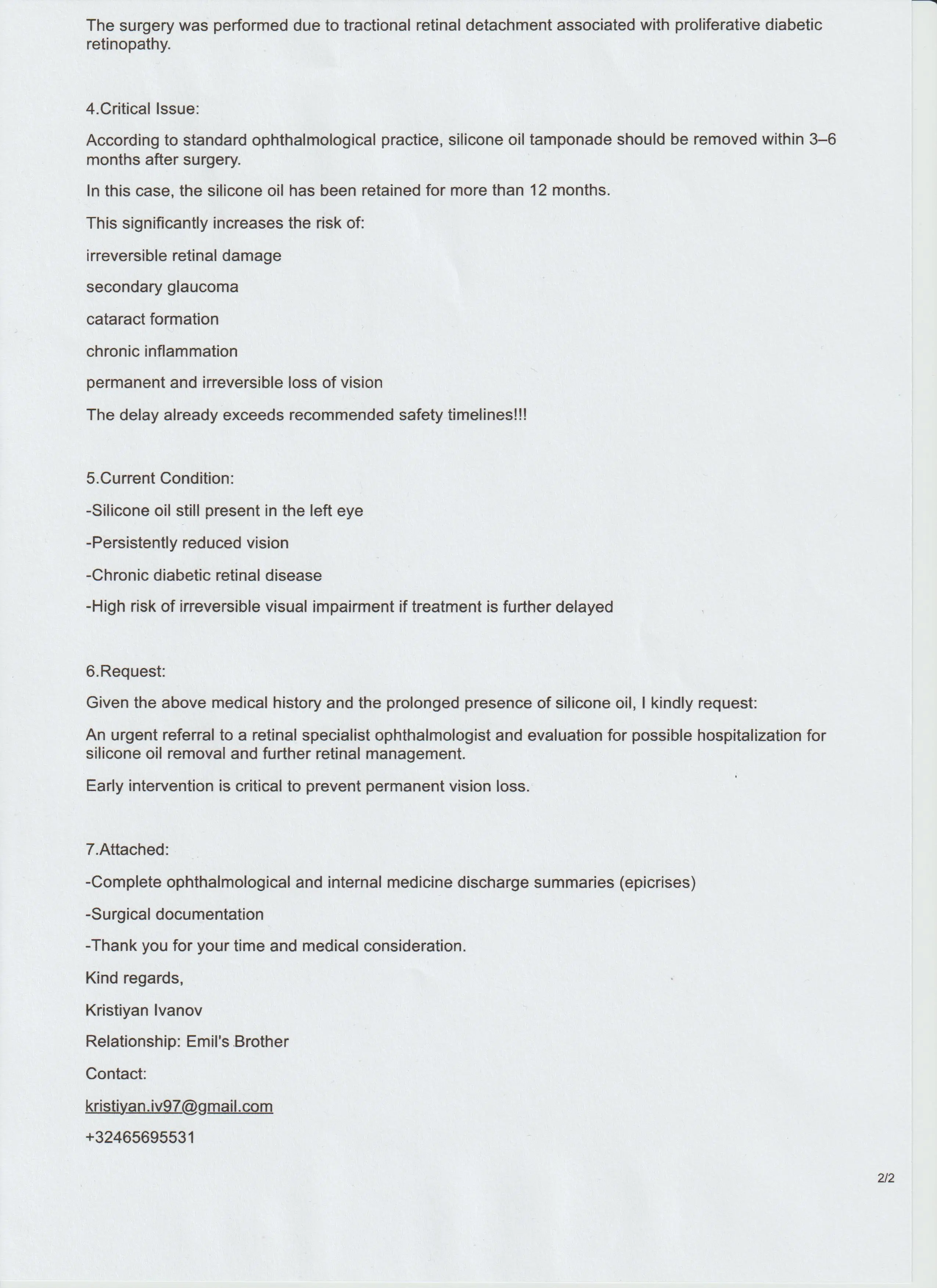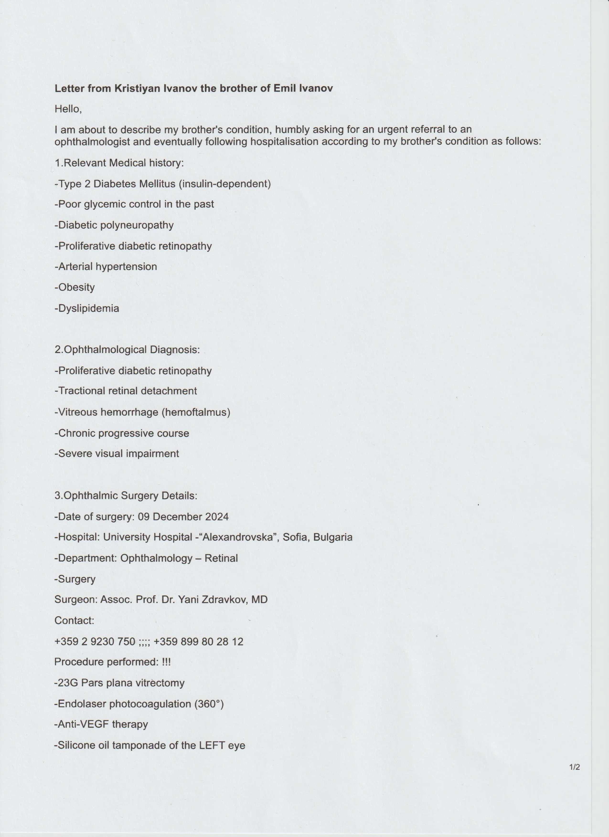 Ще направим всичко възможно да осъществим интервенция, чрез която здравето на брат ми да бъде драстично подобрено. Състоянието ни е каторжно, но не е фатално и до последно винаги ще има надежда.