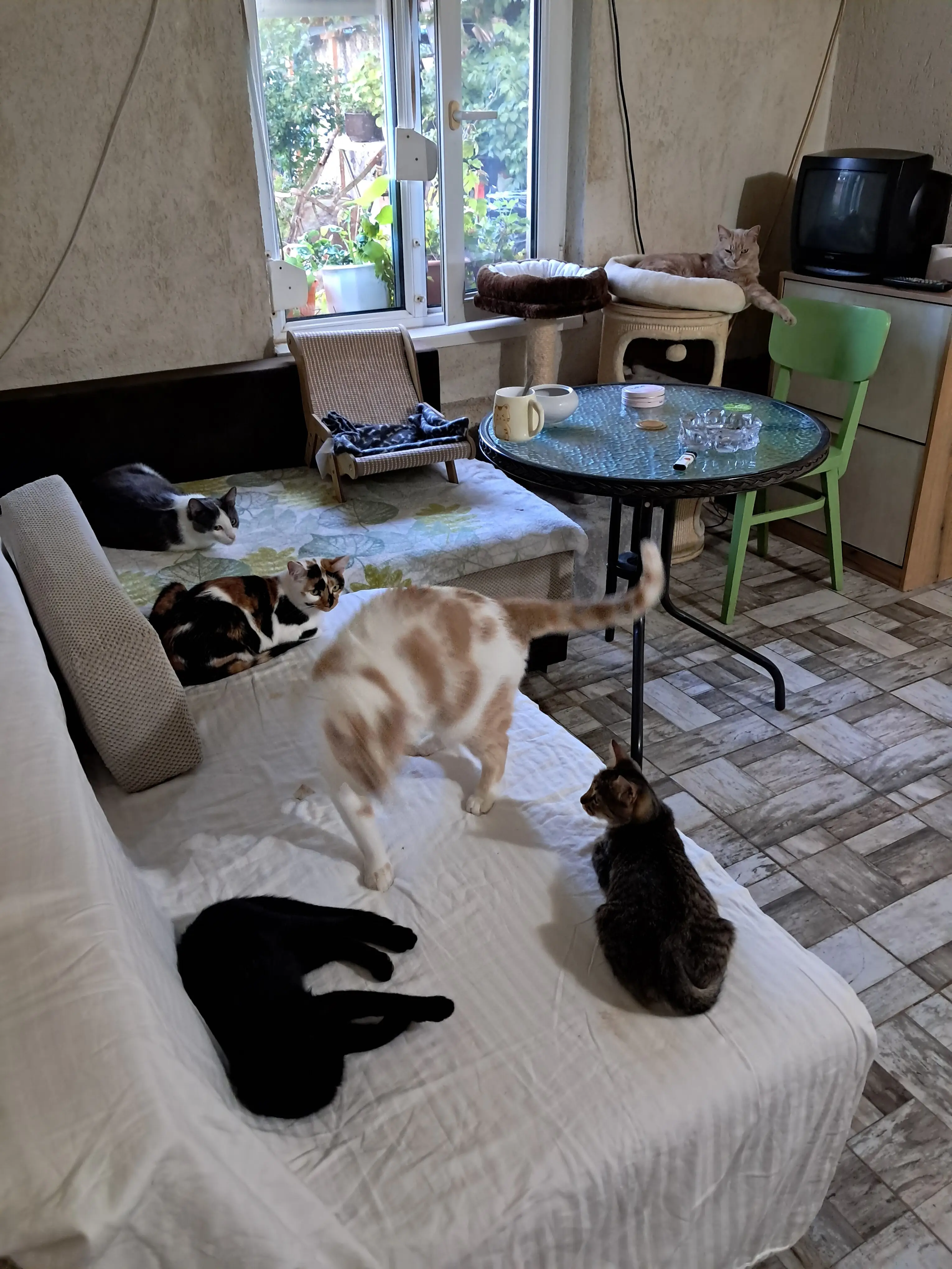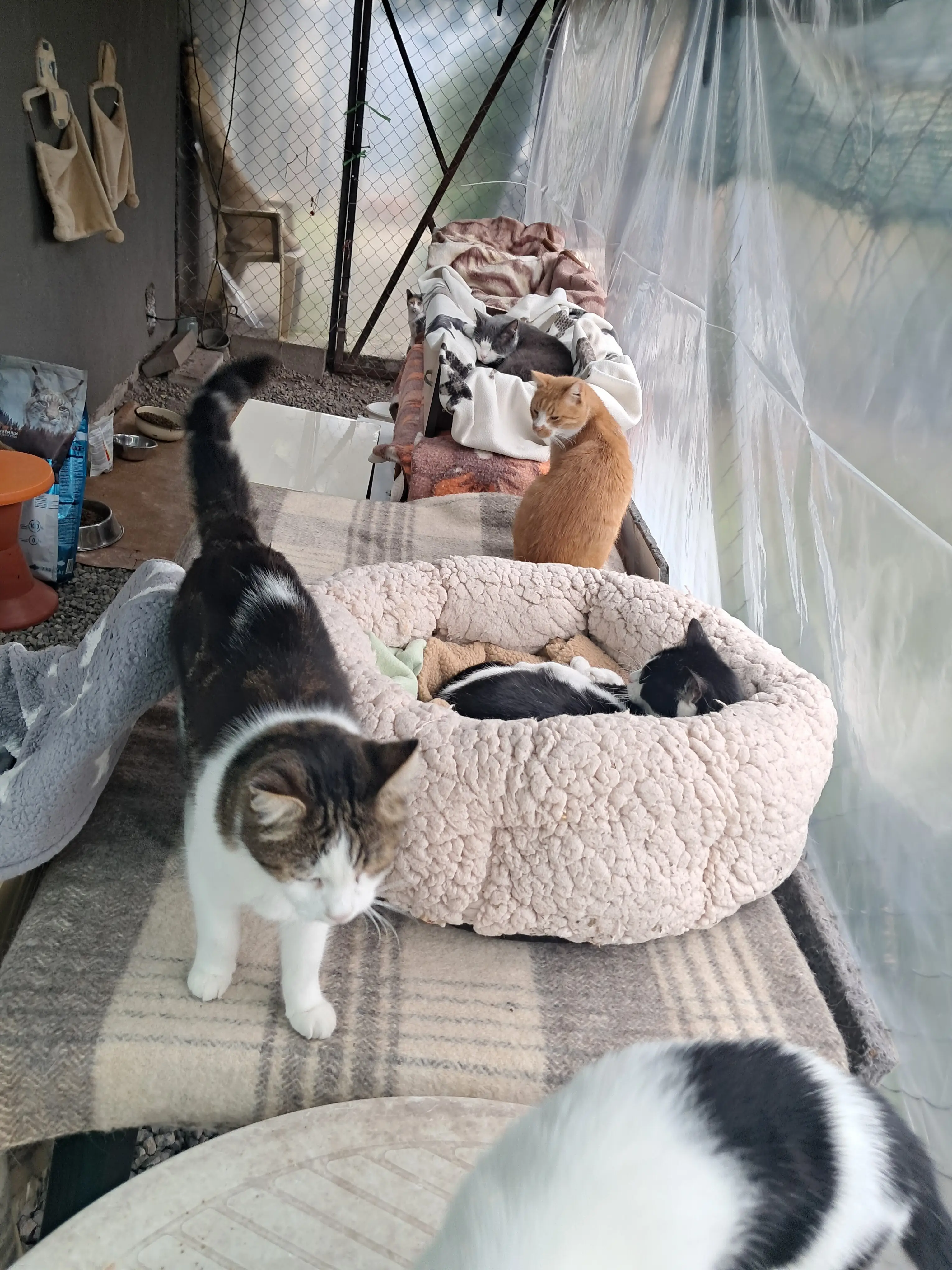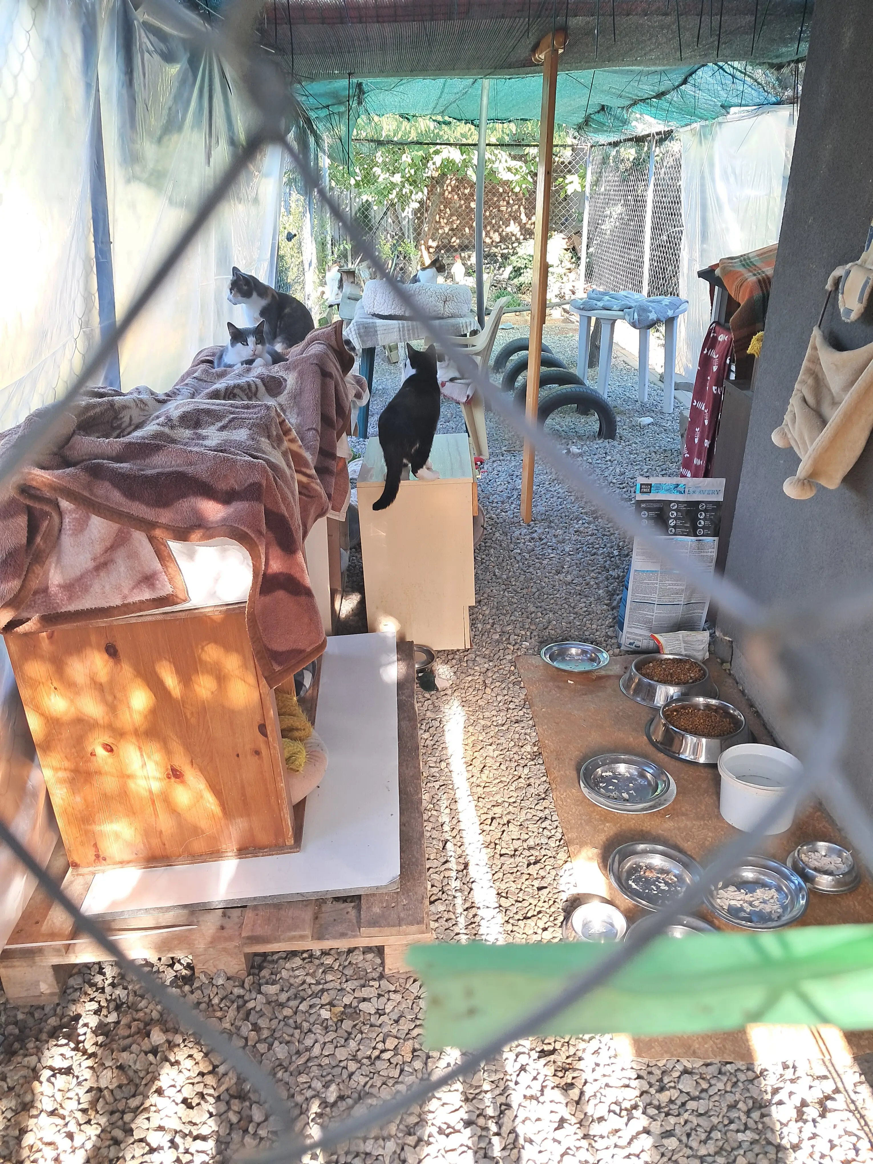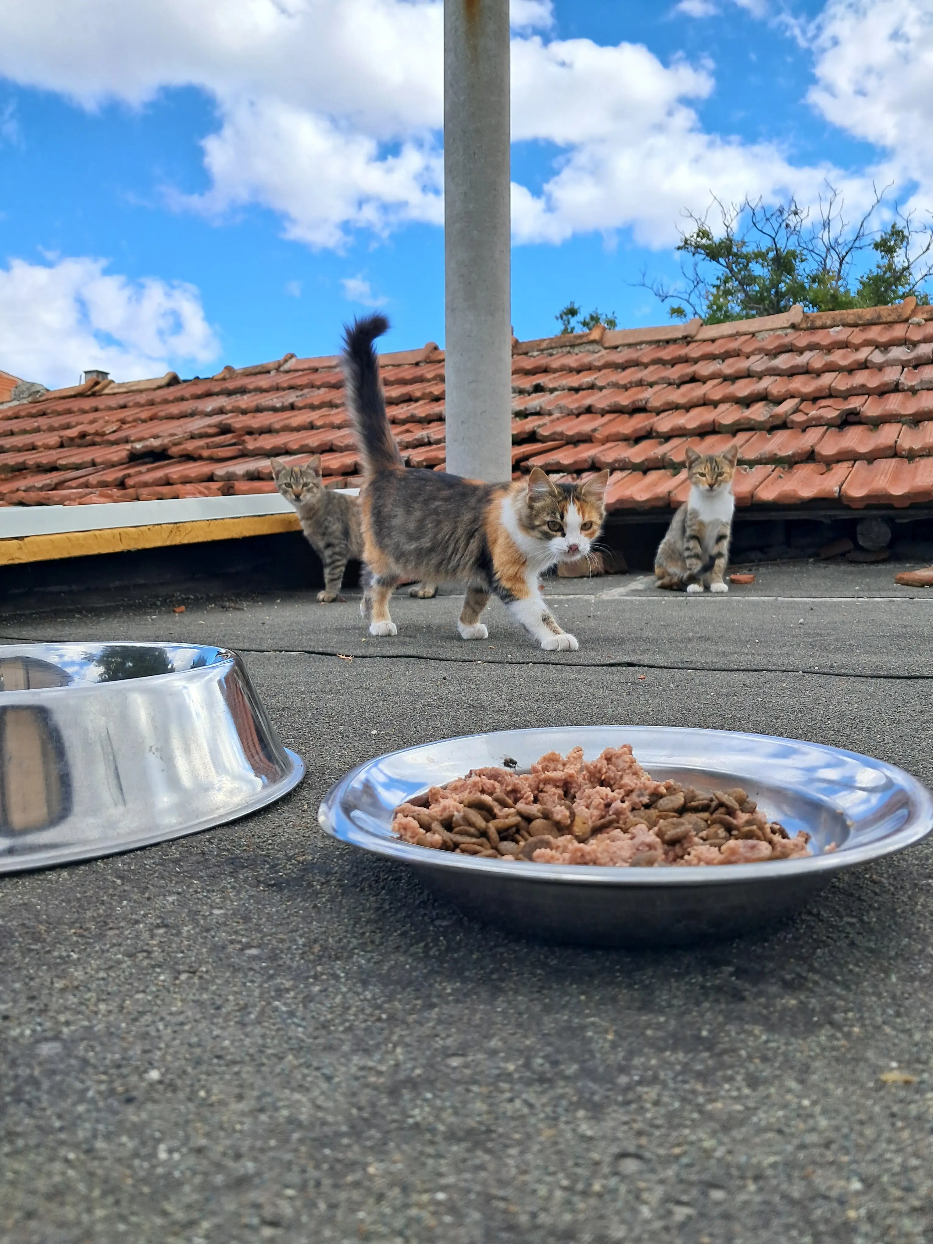 Освен тях, има и 5 бездомни котки, които храня всеки ден. Те са част от малкото котешко семейство, което расте под моите грижи от бебета. Вече са пораснали, здрави и любопитни, но имат нужда от внимание и храна всеки ден.