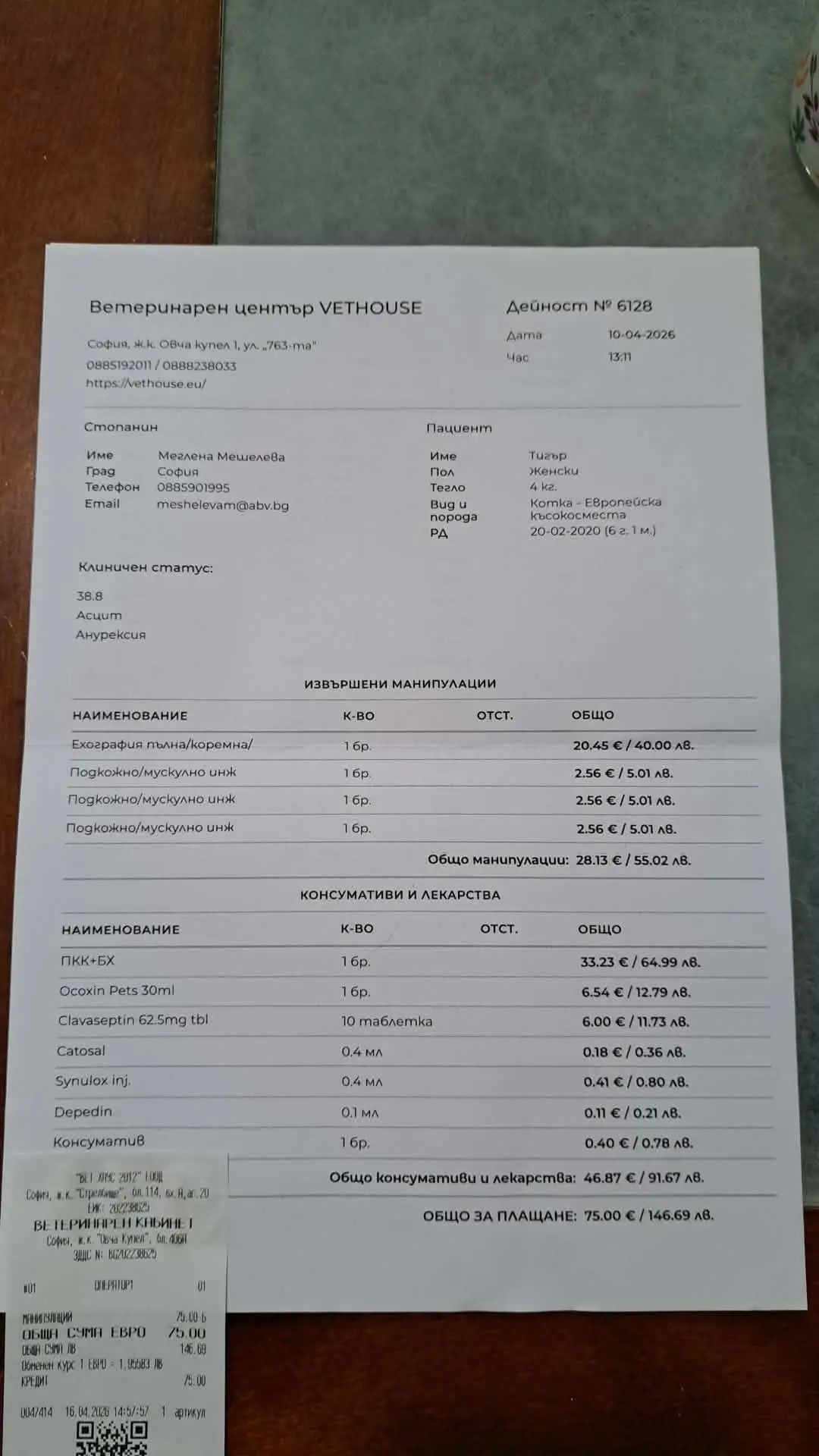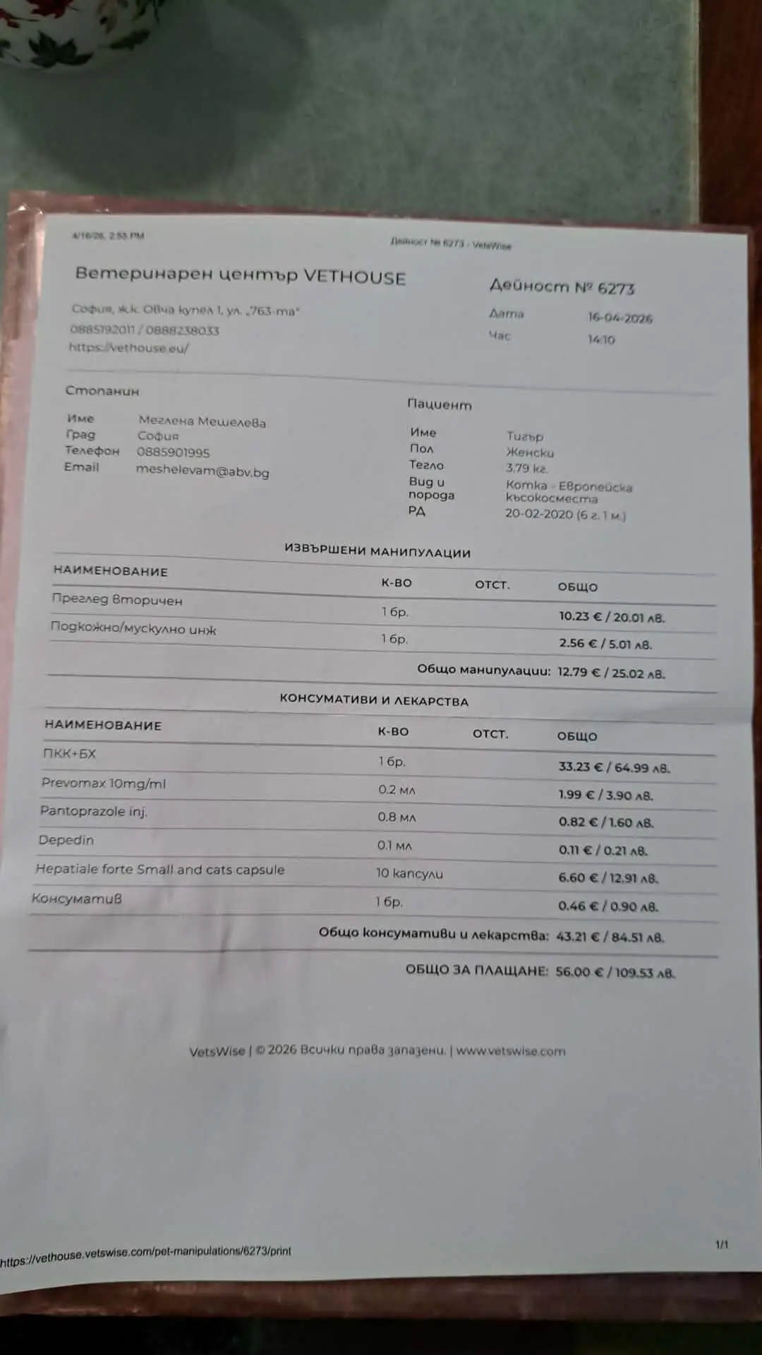 С Тайгър вчера отново бяхме в клиника Vet House при доктор Костадинов.