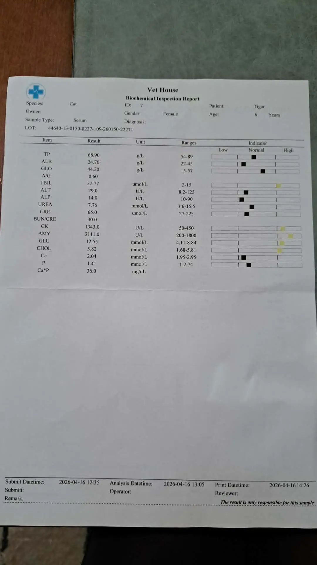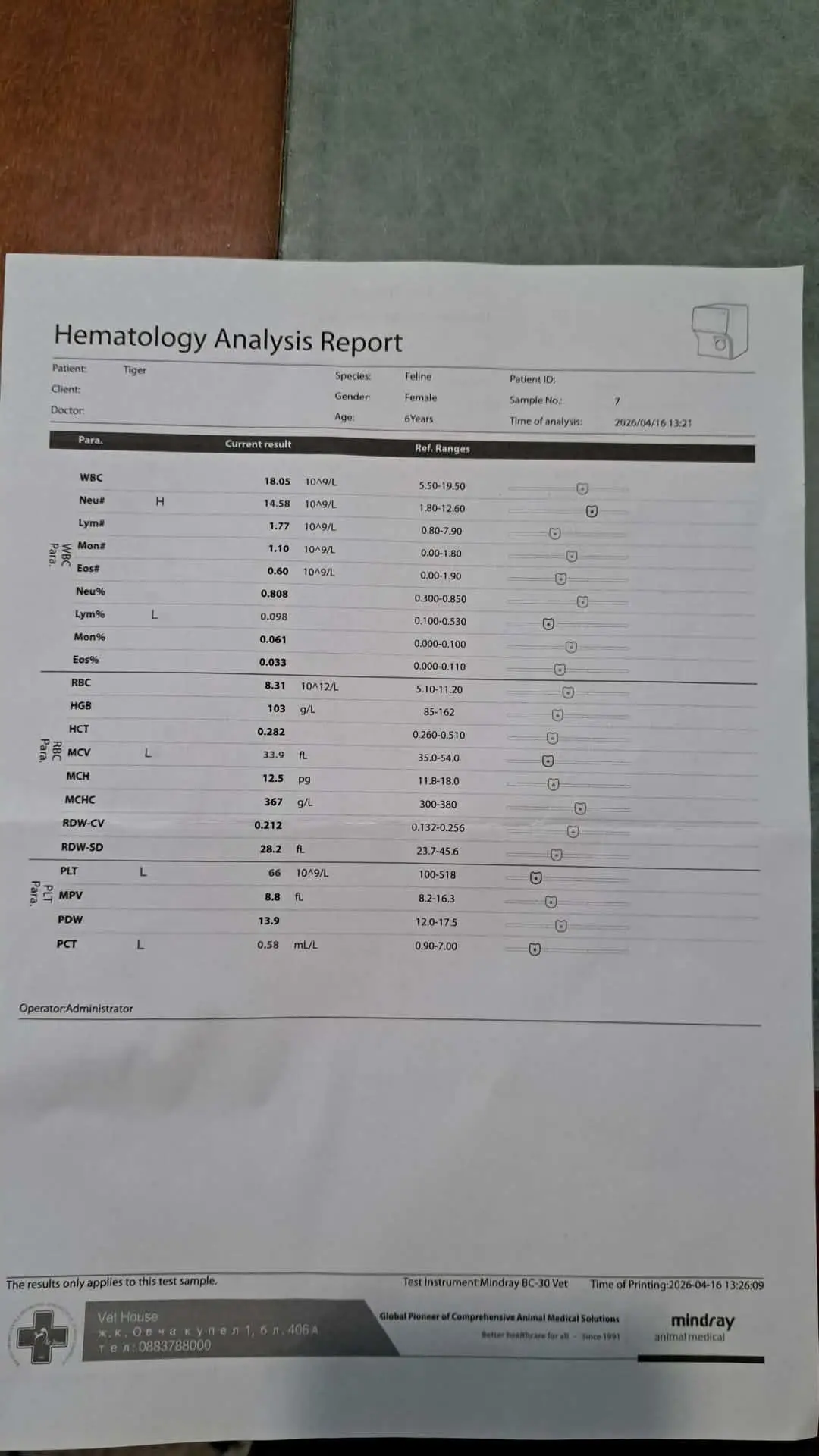 Тайгър не разполага с време. Времето тече неумолимо за нея. Спешно трябва да се направи биопсия и да се изпрати хистология в Лабоклиник - Германия, за да разбереб какъв тип е откритият в основата на тънките черва лимфом. Цената е непосилна за мен - 350 евро.