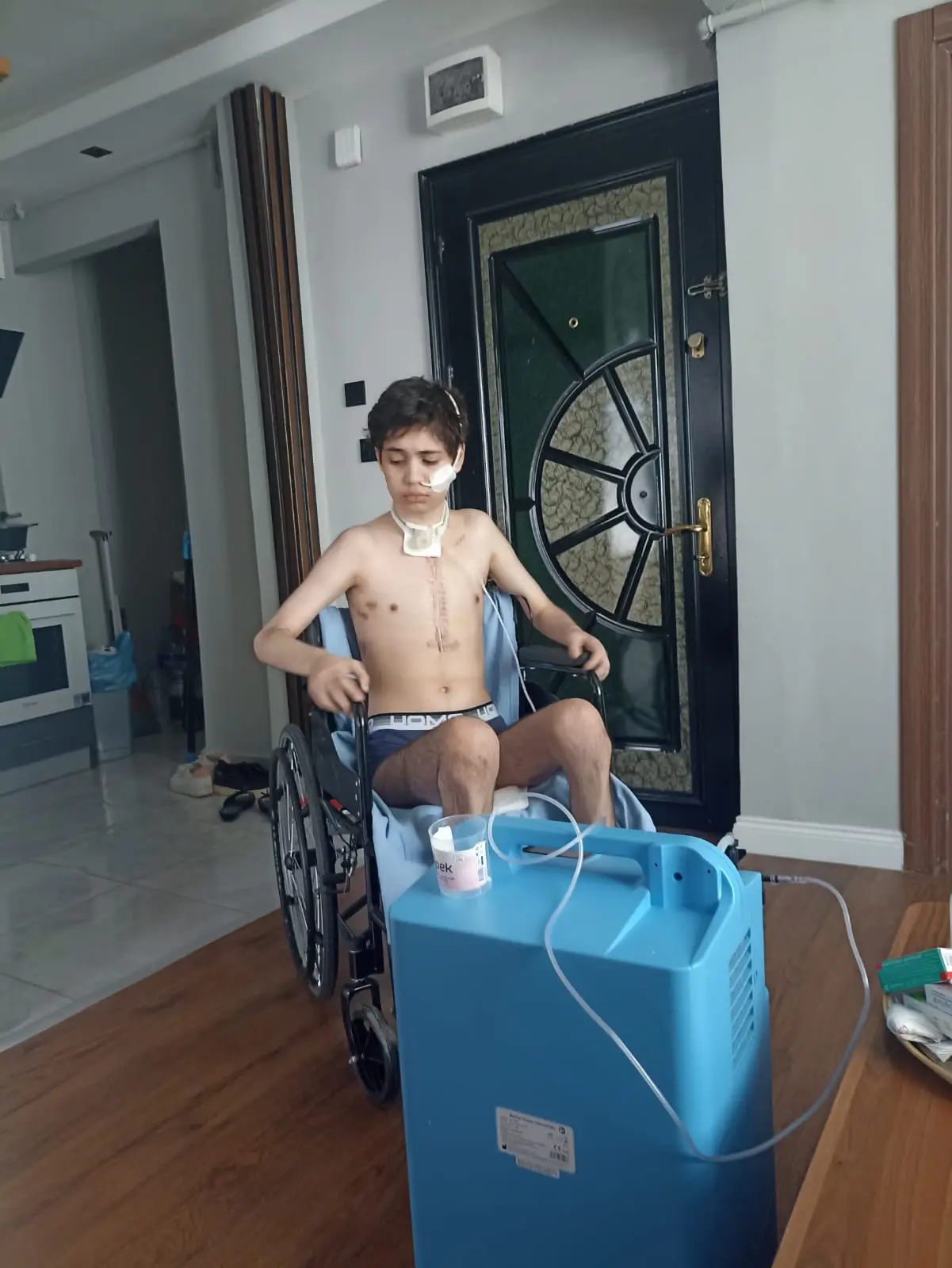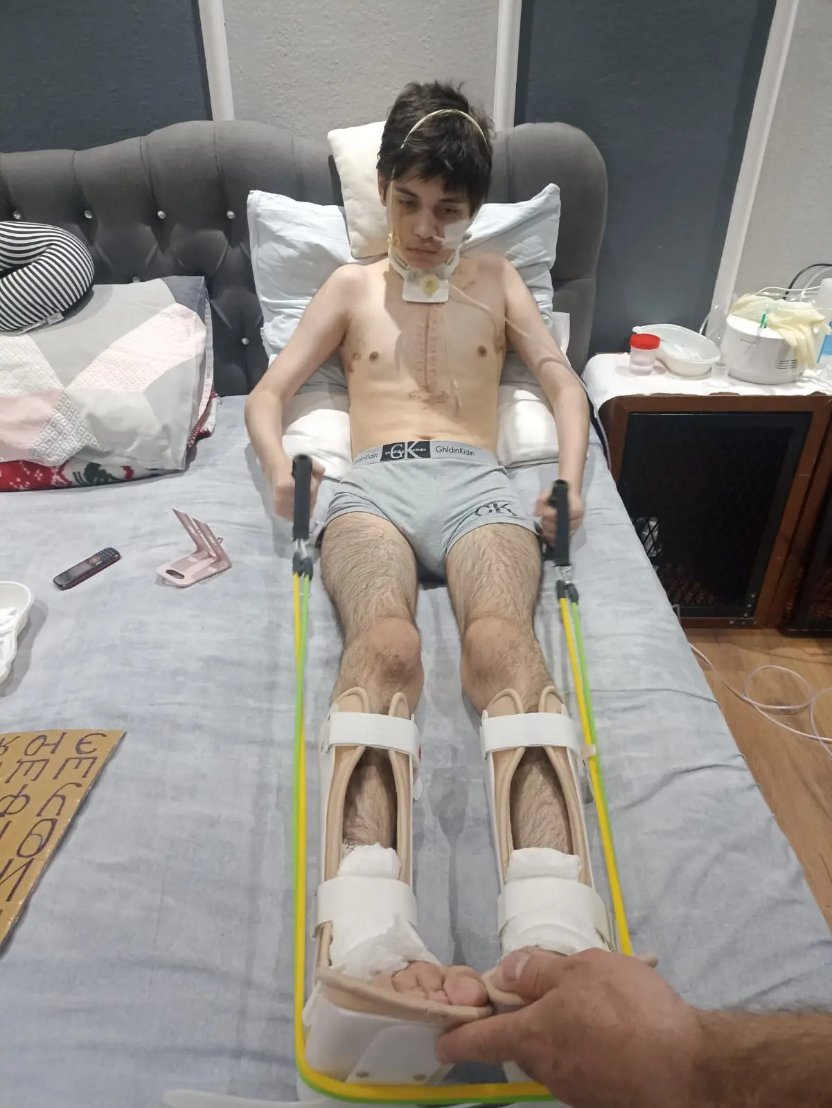 A trecut prin atâtea operații: la inimă, la plămâni, o comă îndelungată și un proces lung de recuperare. Abia acum învață să meargă și să se deplaseze cu ajutorul părinților.