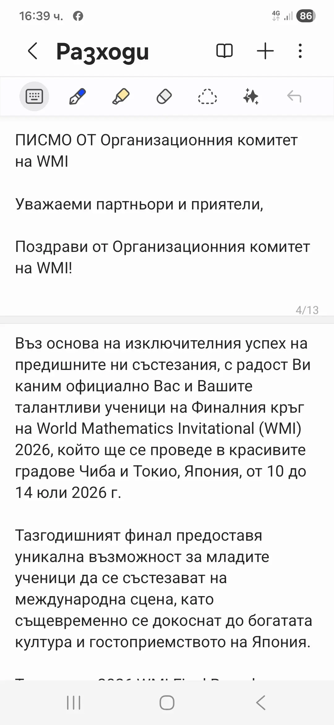 Изпращам ви в снимки писмото от Организационния комитет на WMI.