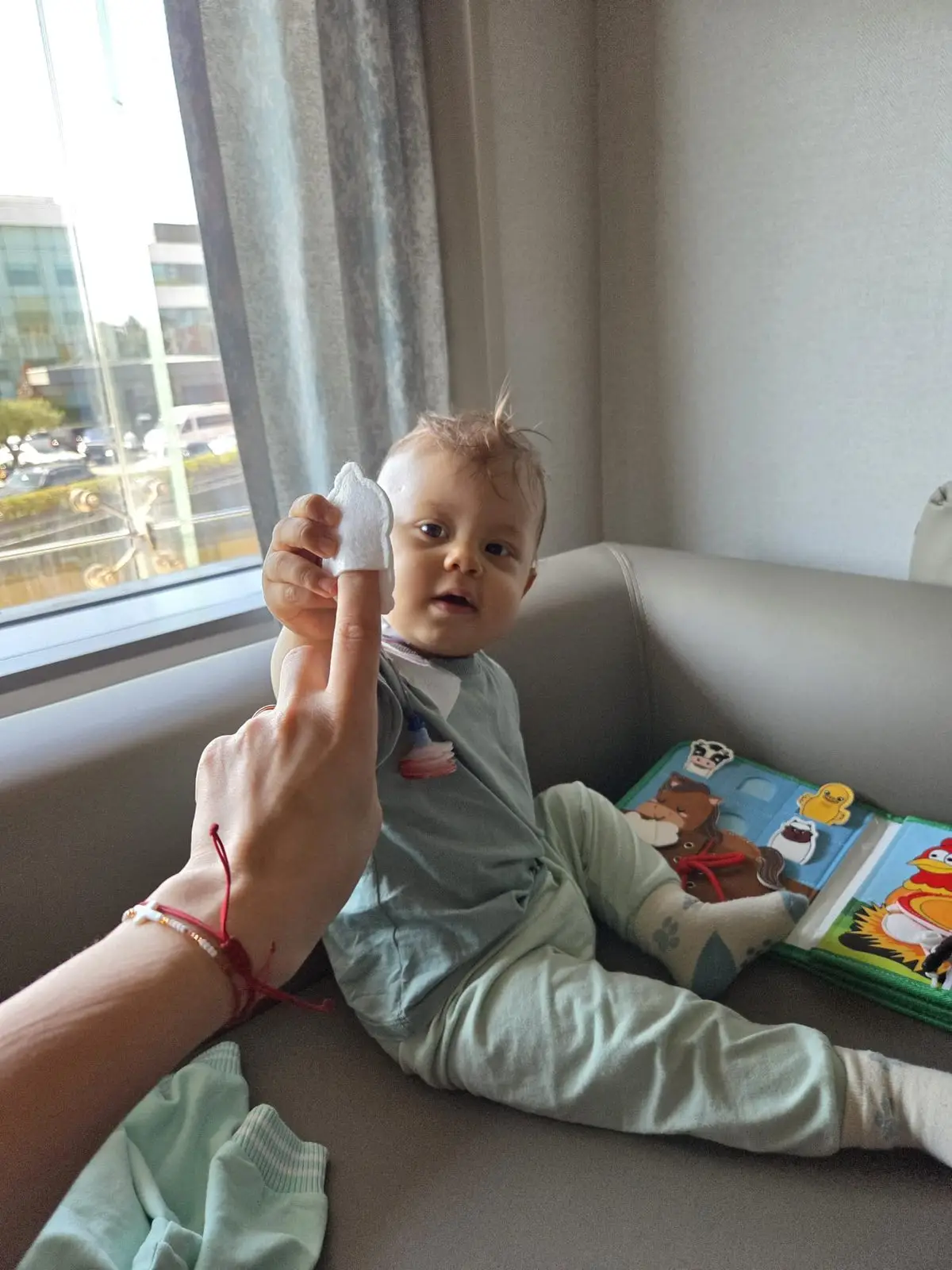 Адриан се чувства добре. Само няколко часа след операцията, той се усмихваше и искаше да играе.