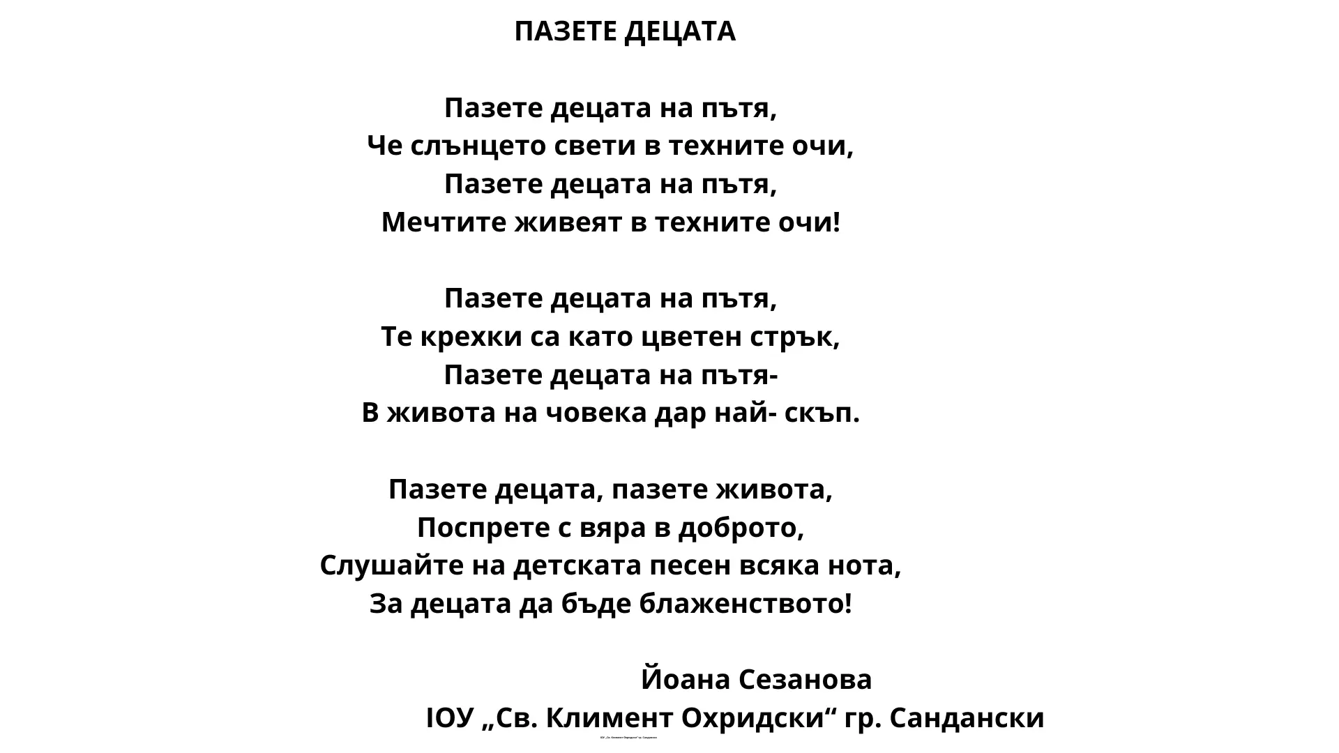 С Ваша помощ и силата на детското слово можем да дадем гласност на този тежък обществен проблем, и да направим своя малък, но смислен принос към по-отговорно и човечно бъдеще за нашите деца.