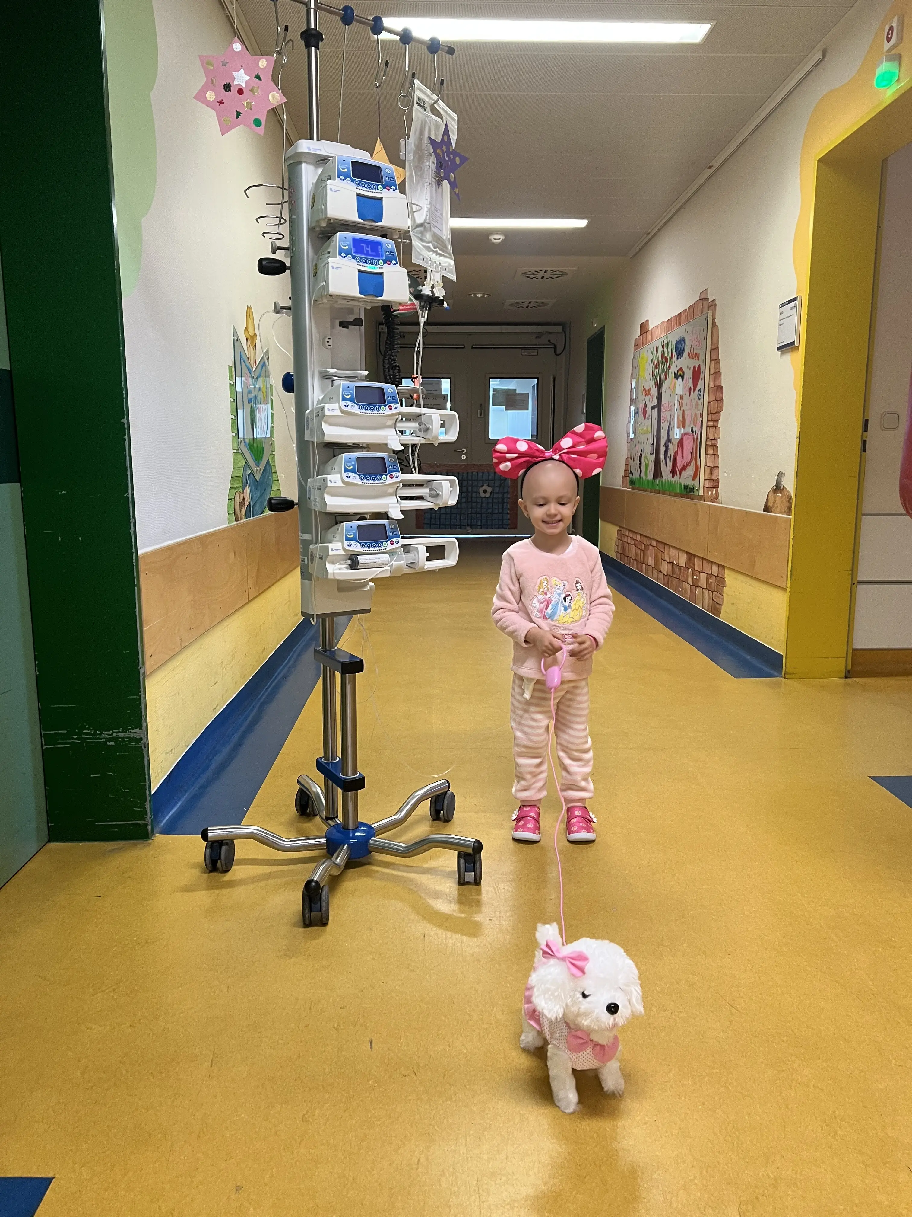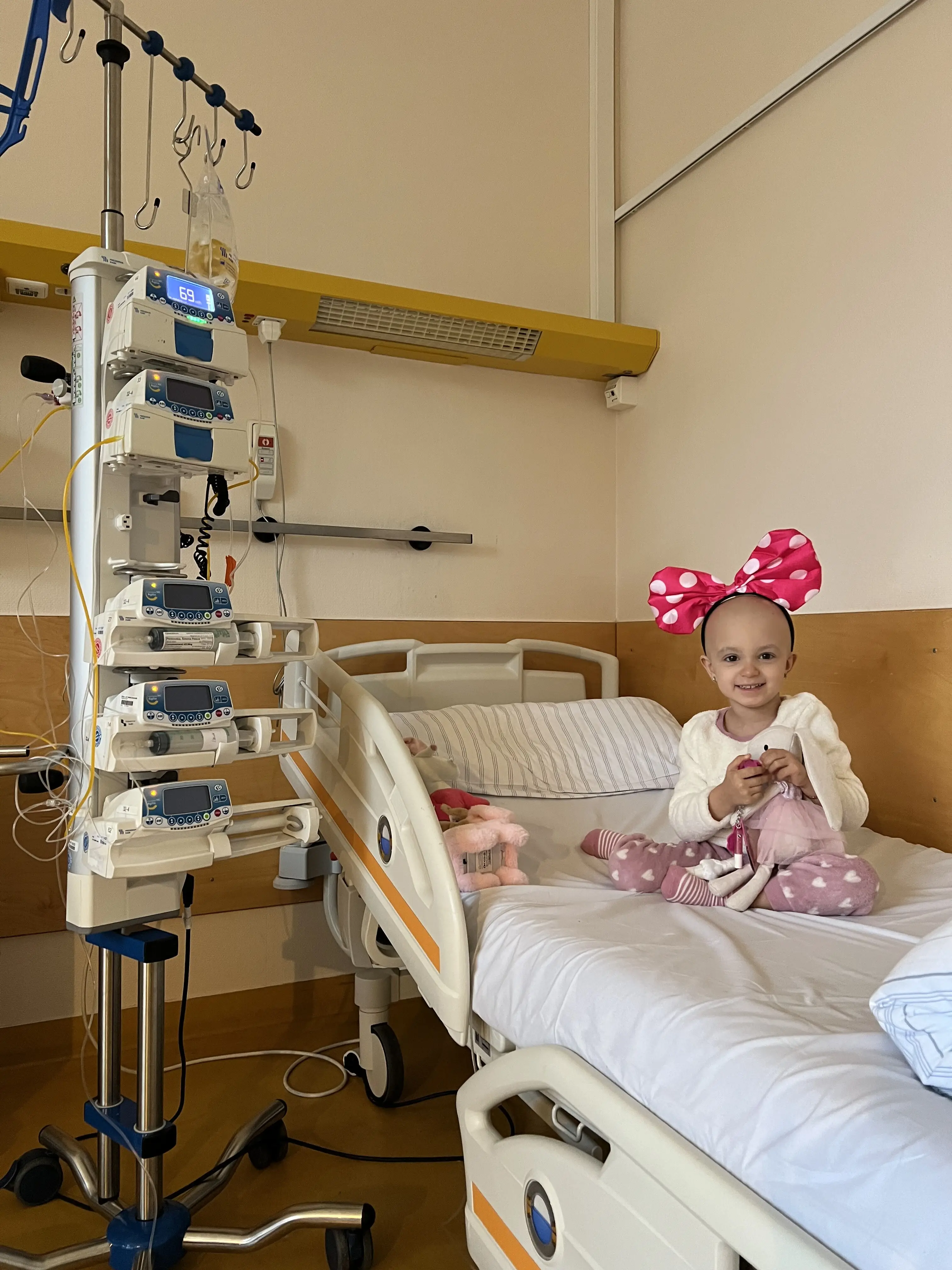 Всичко беше прекрасно, докато един ден през септември 2022година, започна да губи своята координация. След още няколко дни получи гърч, приеха ни по спешност в Иван Рилски гр. София, където чухме и най - лошото - тумор в мозъка и хидроцефалия. Преминахме през 4 операции, след което последваха 16 курса химиотерапия и още 12 курса химиотерапия през "Омая-та"( контейнерчето поставено в главата на Мони).
