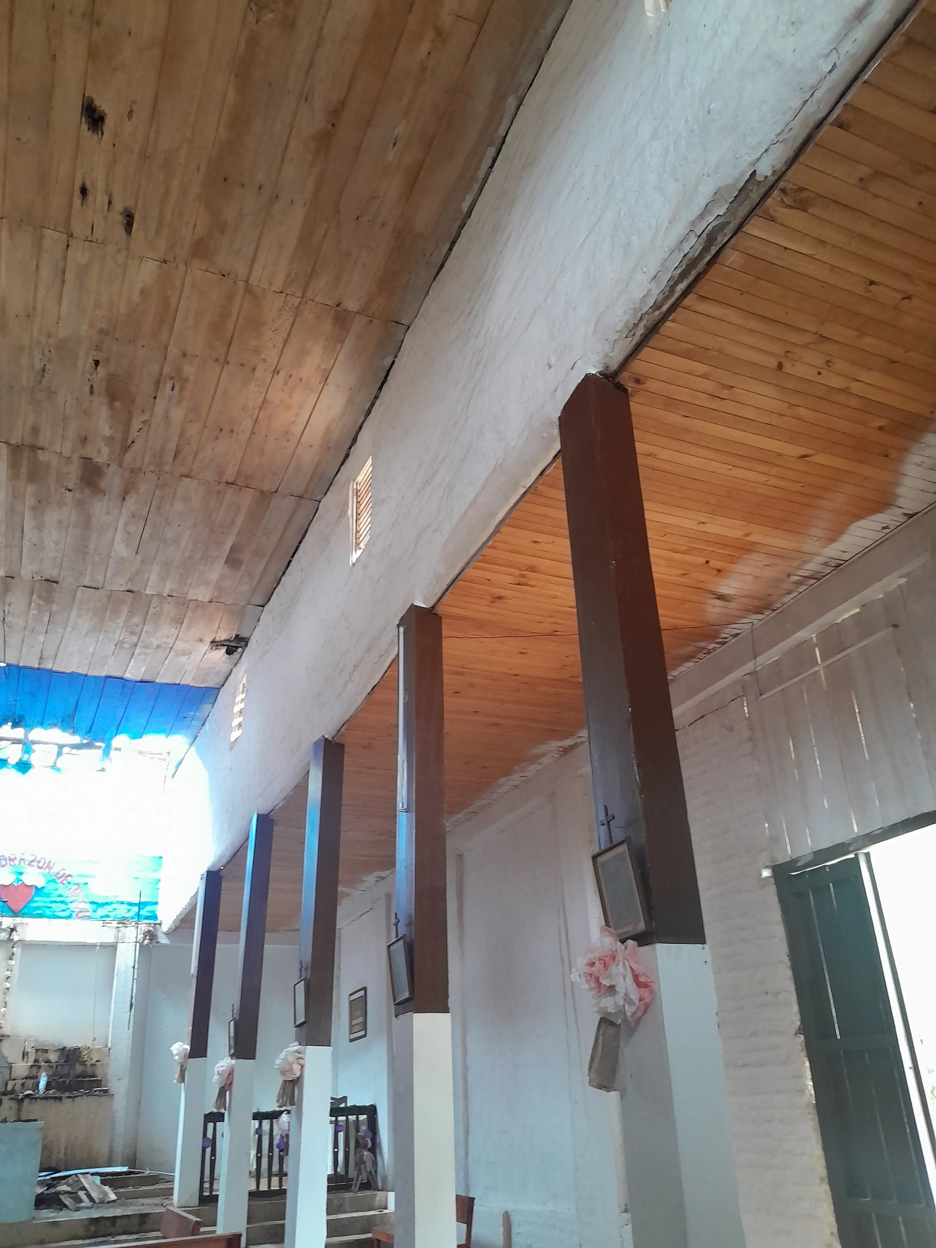Esta es una iglesia antigua que se resiste a caer. Un templo lleno de historia, construido en tiempos en los que no existían carreteras, sino únicamente caminos de herradura. Nuestros antepasados levantaron sus muros con enorme esfuerzo, subiendo los materiales a lomo de mula y por trochas difíciles. Cada piedra guarda el sacrificio y la fe de toda una comunidad.