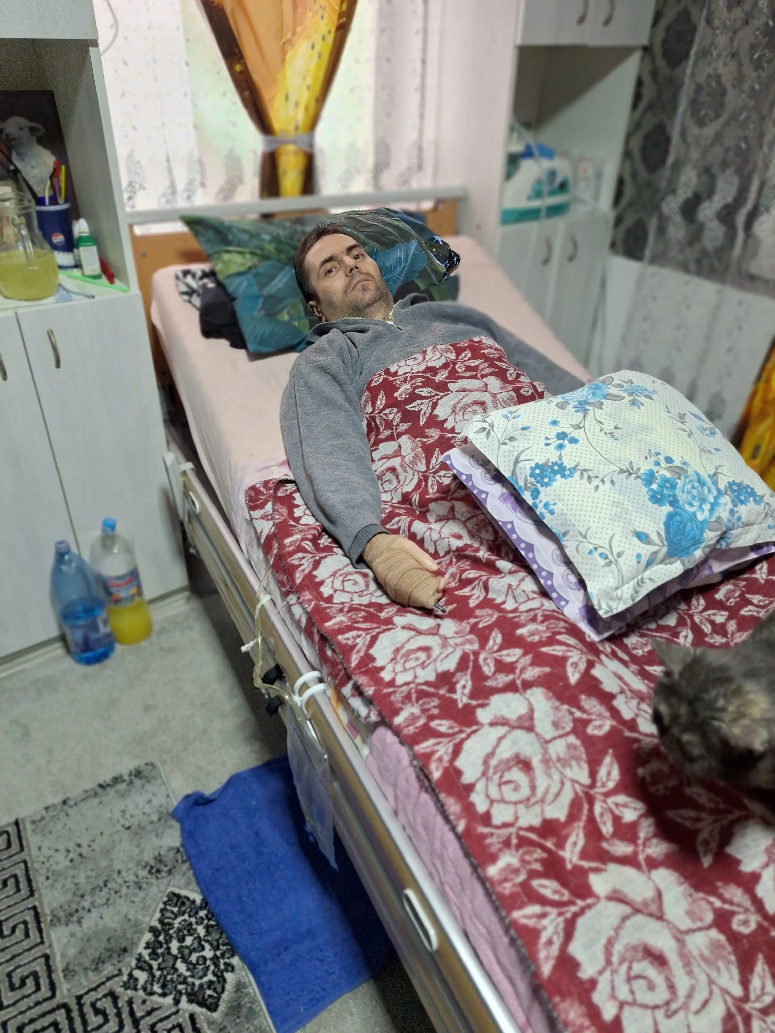 Recent am fost internat la Spitalul Universitar din București, unde am stat 5 luni la ATI. În urma internării, starea mea s-a agravat, iar acum am nevoie de îngrijire zilnică și condiții minime pentru a putea trăi.