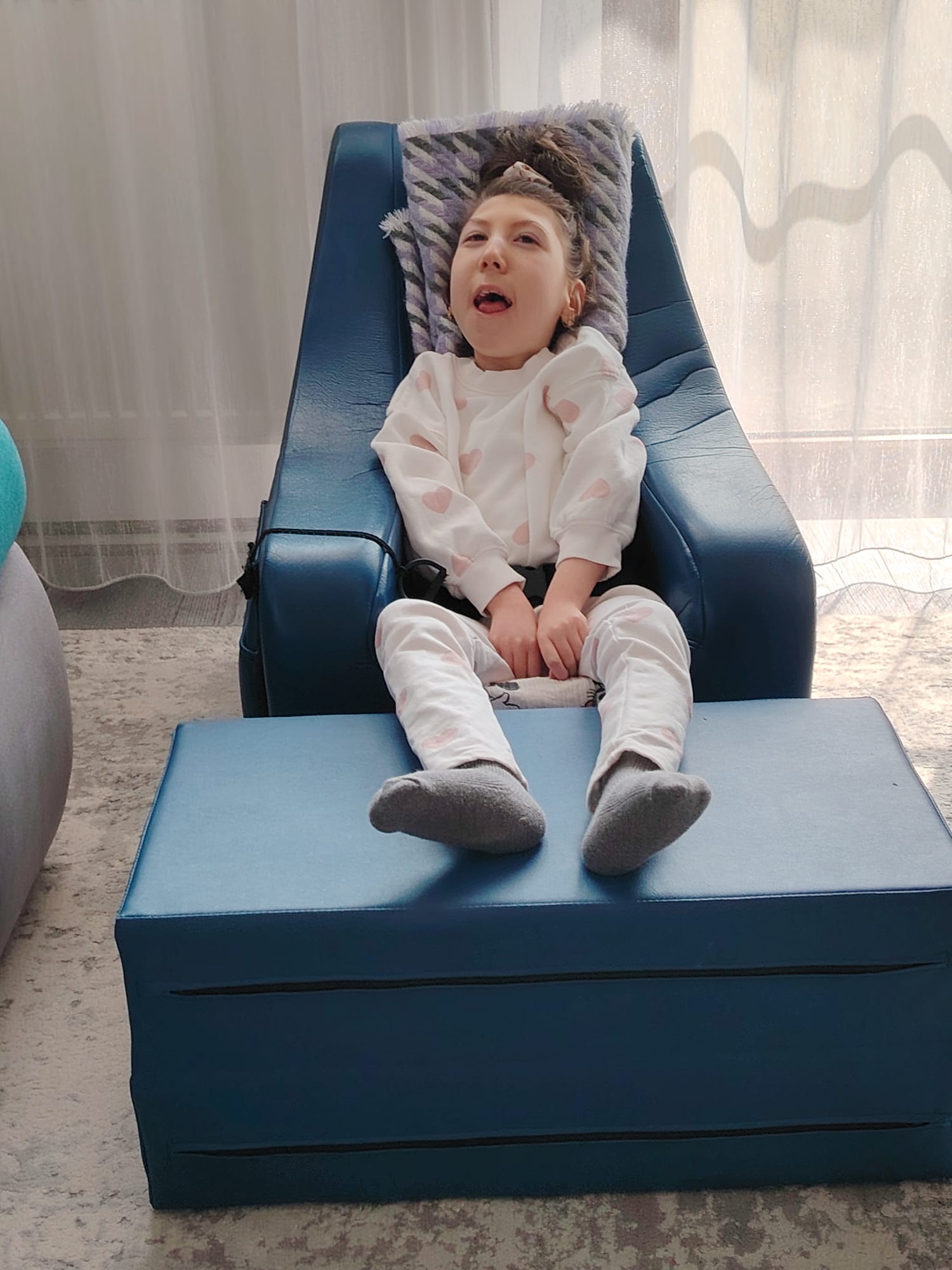 Ieri a fost unul dintre acele momente pe care nu le voi uita niciodată… pentru prima dată am pus-o în picioare. Da, încă o doare… dar calcă… stă mai dreaptă… mânuțele ei sunt mai relaxate… și parcă văd speranța în fața ochilor mei.