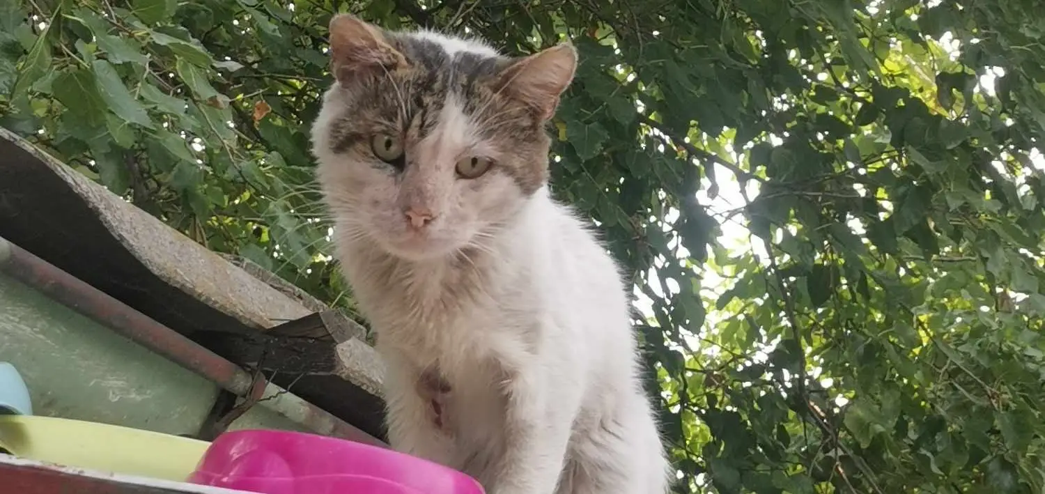 ТОМИ е намерен на покрива на една къща , където ходихме да го храним, забелязахме, че има рани, успяхме да го свалим и приберем, след това беше закаран в клиника, КЪДЕТО НИ СЪОБЩИХА, ЧЕ ТОМИ Е С ХРОНИЧА БЪБРЕЧНА НЕДОСТАТЪЧНОСТ, СПИН и ИМУННО- ХЕМОЛИТИЧНА АНЕМИЯ.