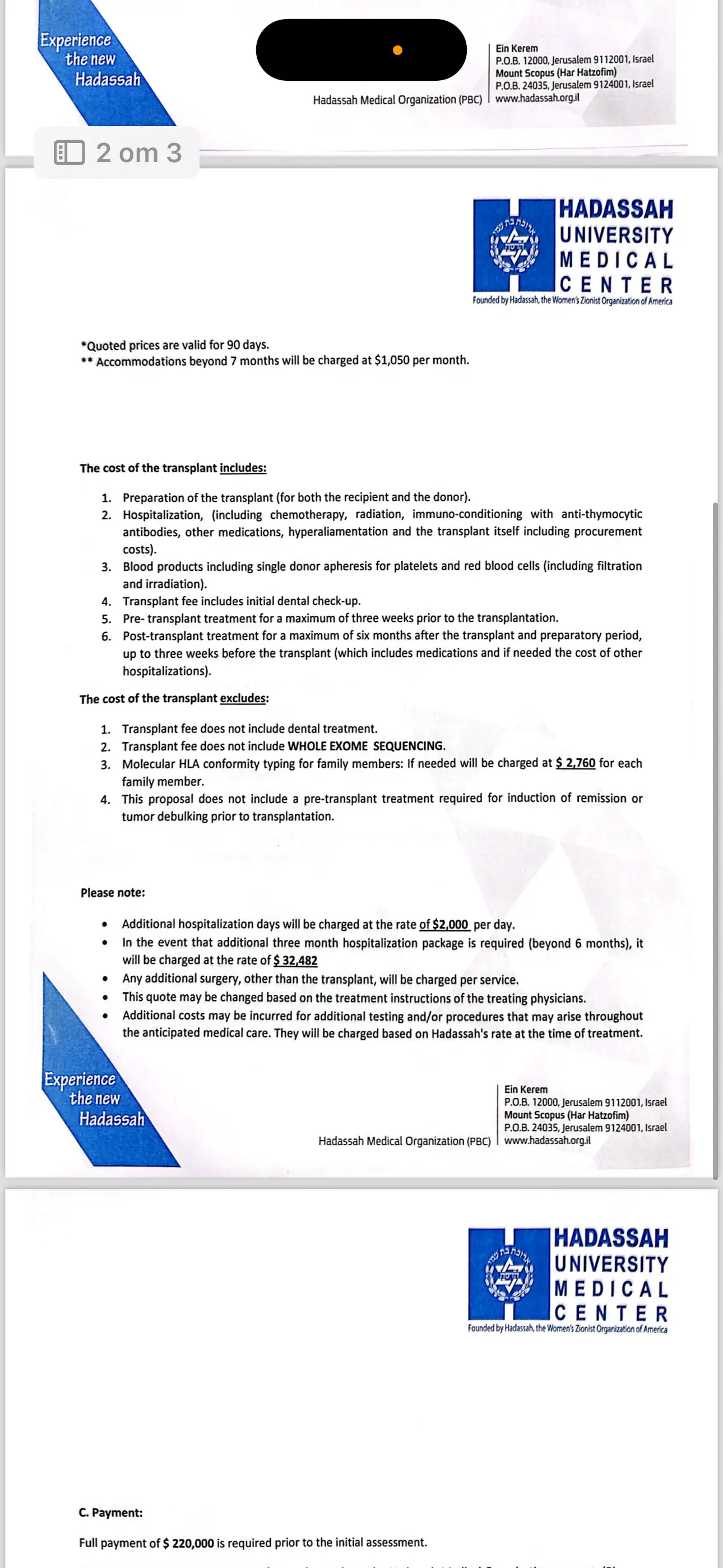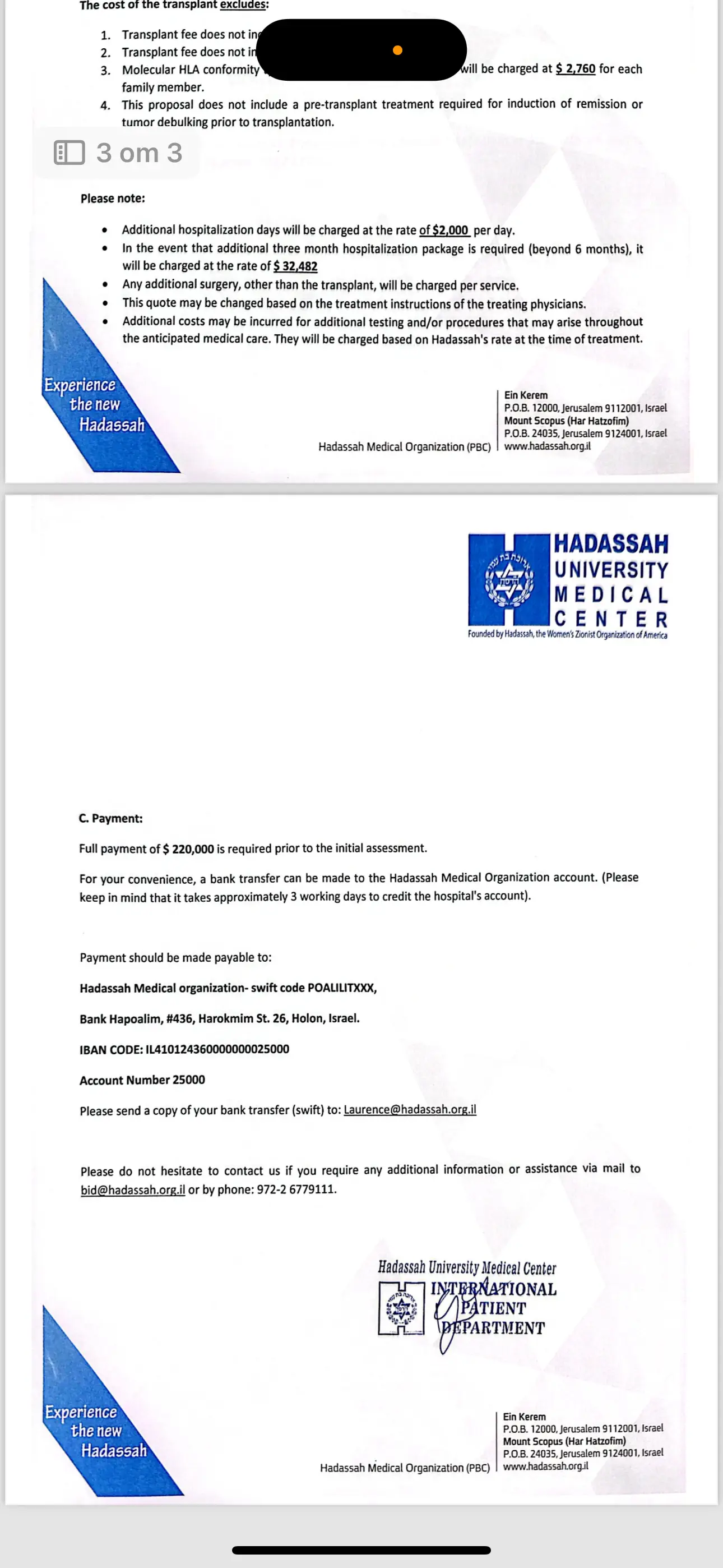We received the official offer for the NICOLE bone marrow transplant, which includes the post-transplant treatment period!