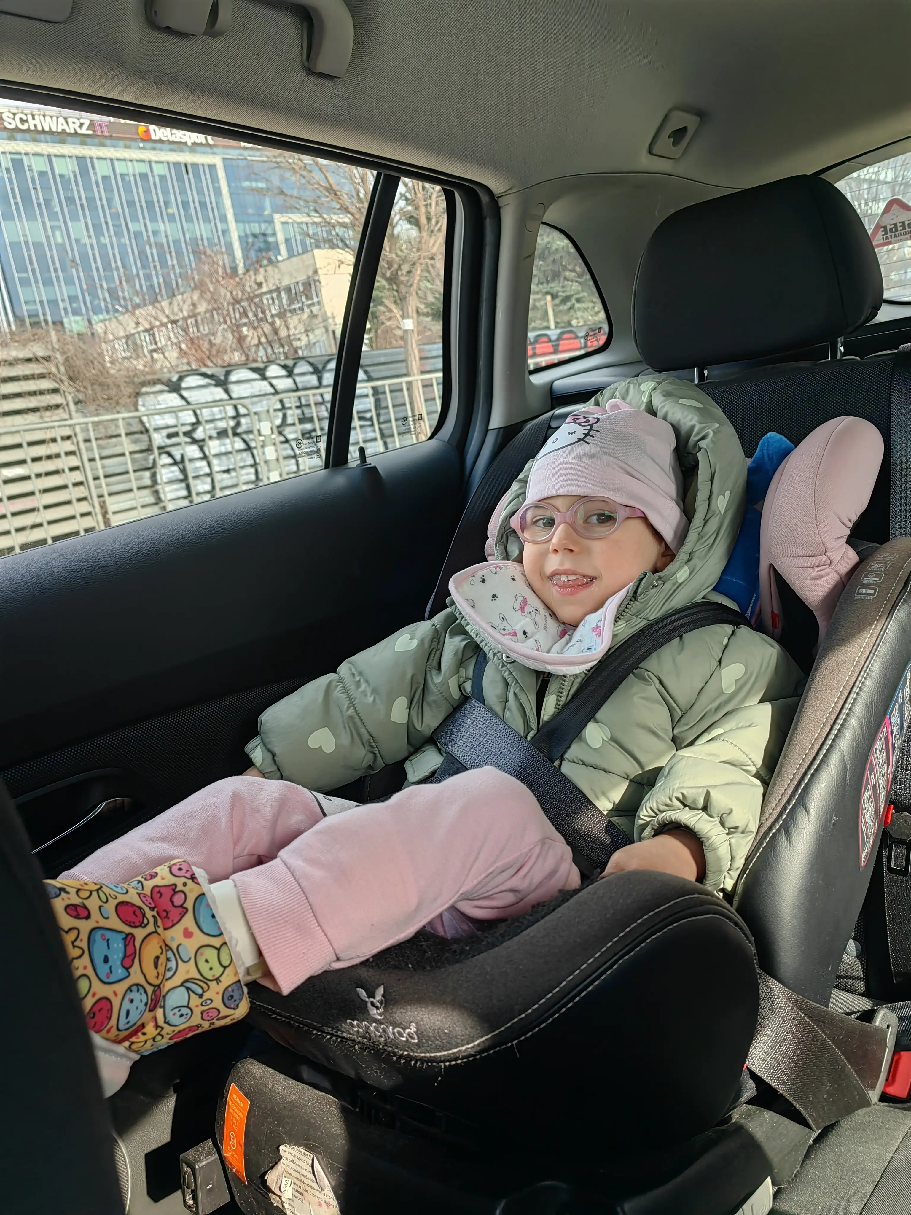 Hi we are uploading pictures to show off our new splints which we are now using to take steps a little bit easier 🤗 We are working hard to tighten our upper body yet we don't have an independent sitting or standing position yet but we work every day whether in Sofia in the center , at home or in Istanbul 🙏Thank you without reservation for every penny you spent for us ❤ We don't give up every day be blessed by God 🙏