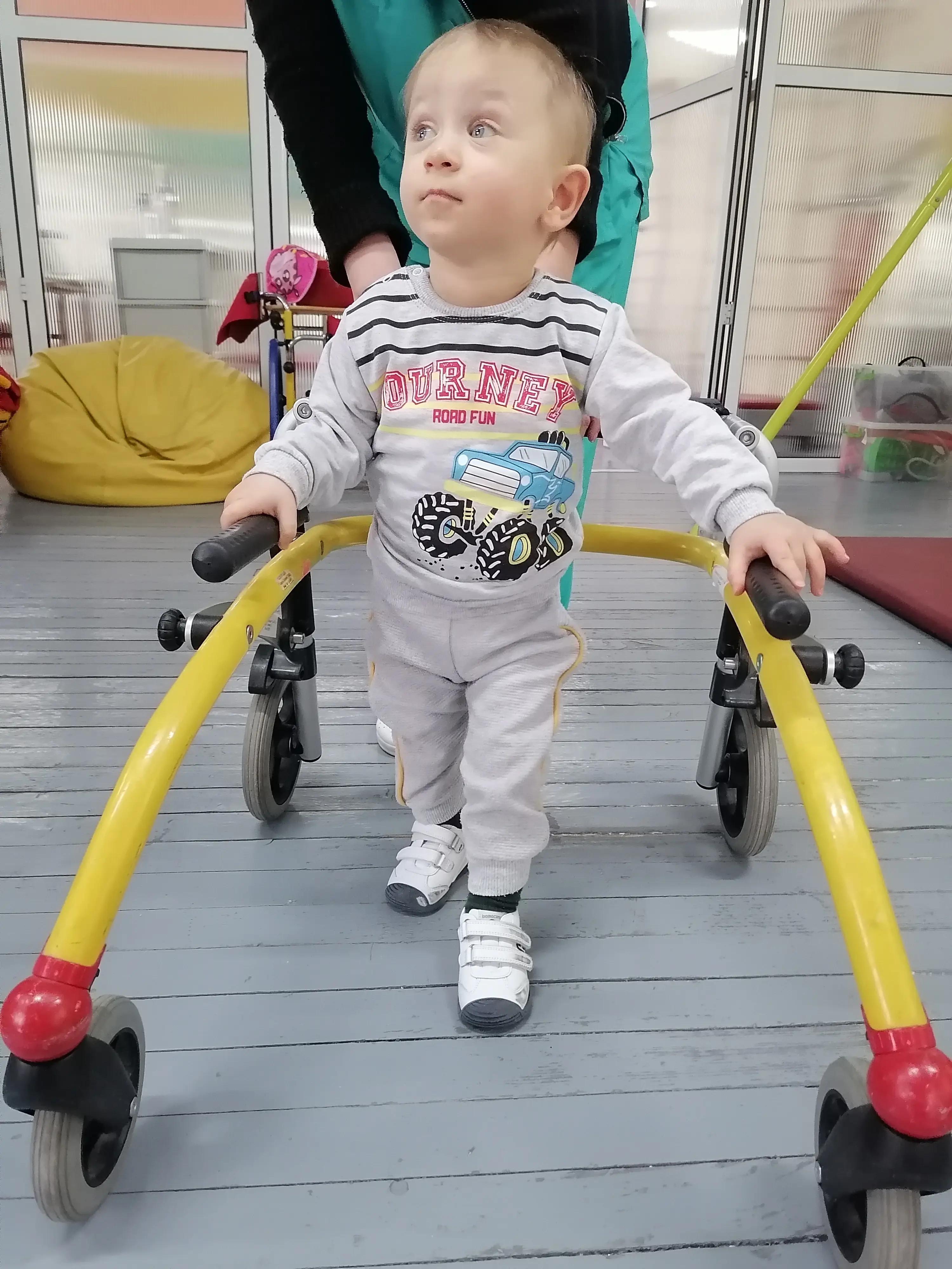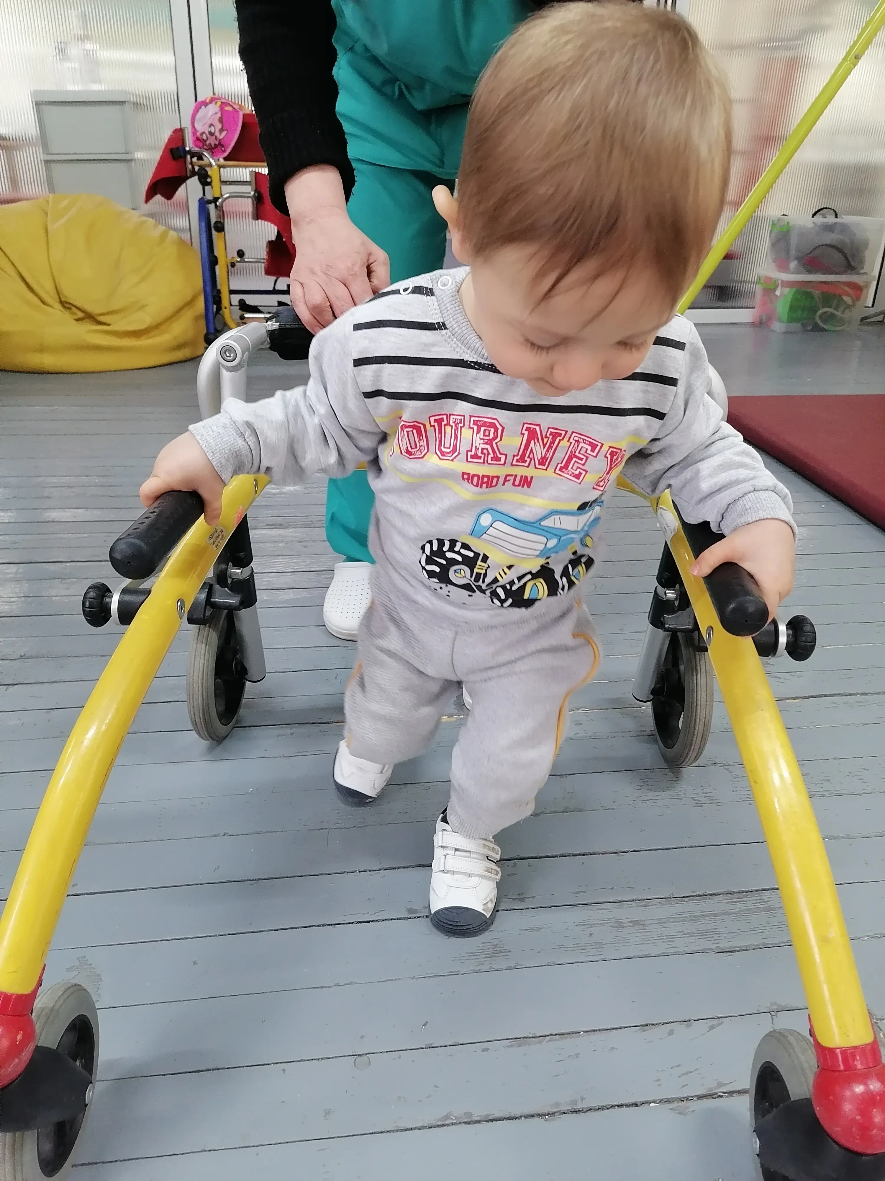 Because of this, he required continuous rehabilitation up to the time of the walk and perhaps beyond. We take him for rehabilitation in a specialized hospital for the rehabilitation of cerebral palsy "St. Sofia" in St. Sofia. We have been working with him at the Sofia Cerebral Palsy Hospital in Sofia, but the funds are not enough and do not cover all the procedures he needs, so we need your help. Our family is doing everything possible to provide the necessary treatment, but the costs are beyond our means. The doctors recommend analytical therapeutic exercise-Voit Kinesiotherapy, mid-frequency current treatment, positional therapy- ergotherapy, vestibular stimulation, and oral feeding support- orofacial therapy.