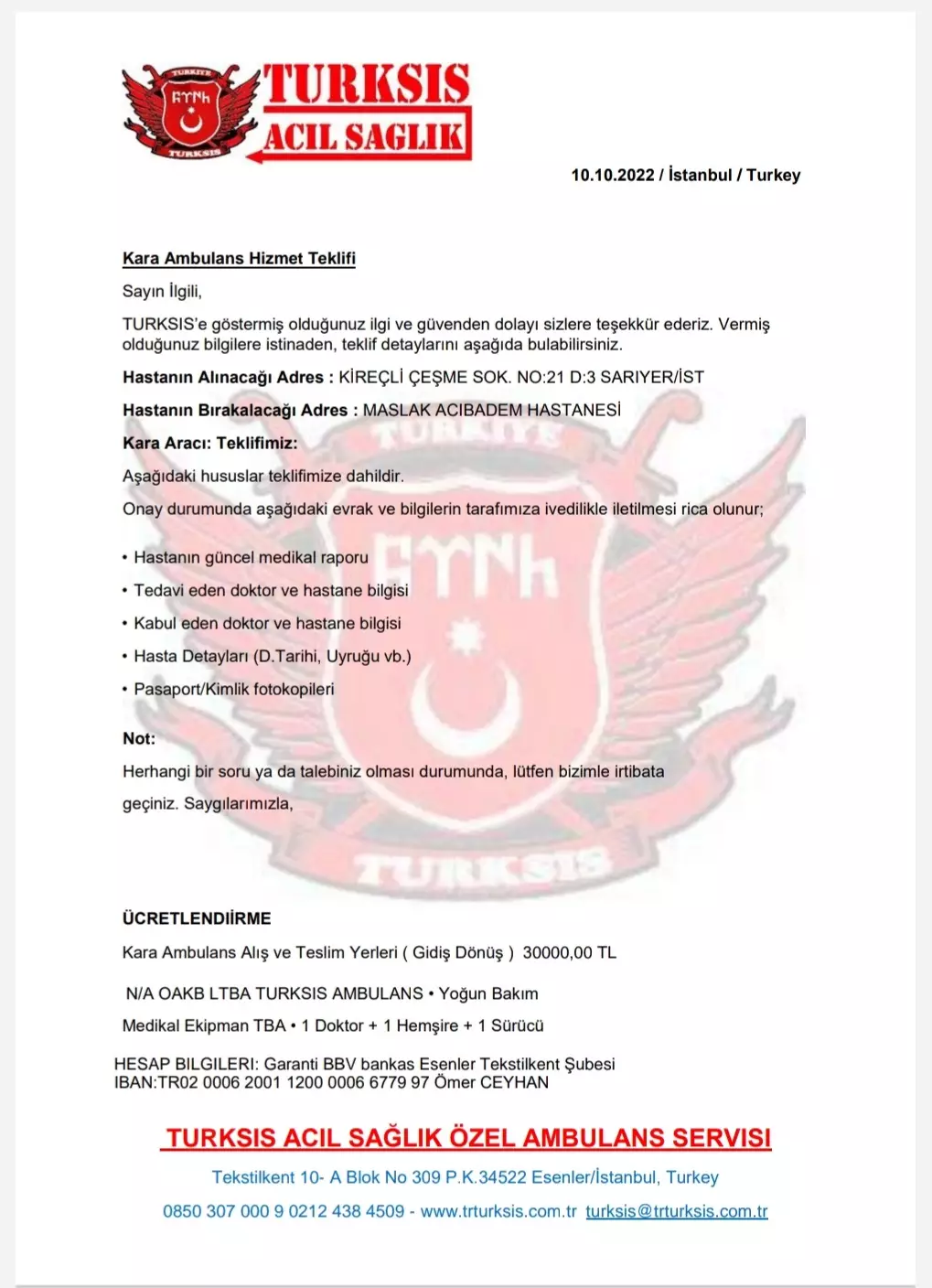 30 000 TL - Transport by ambulance