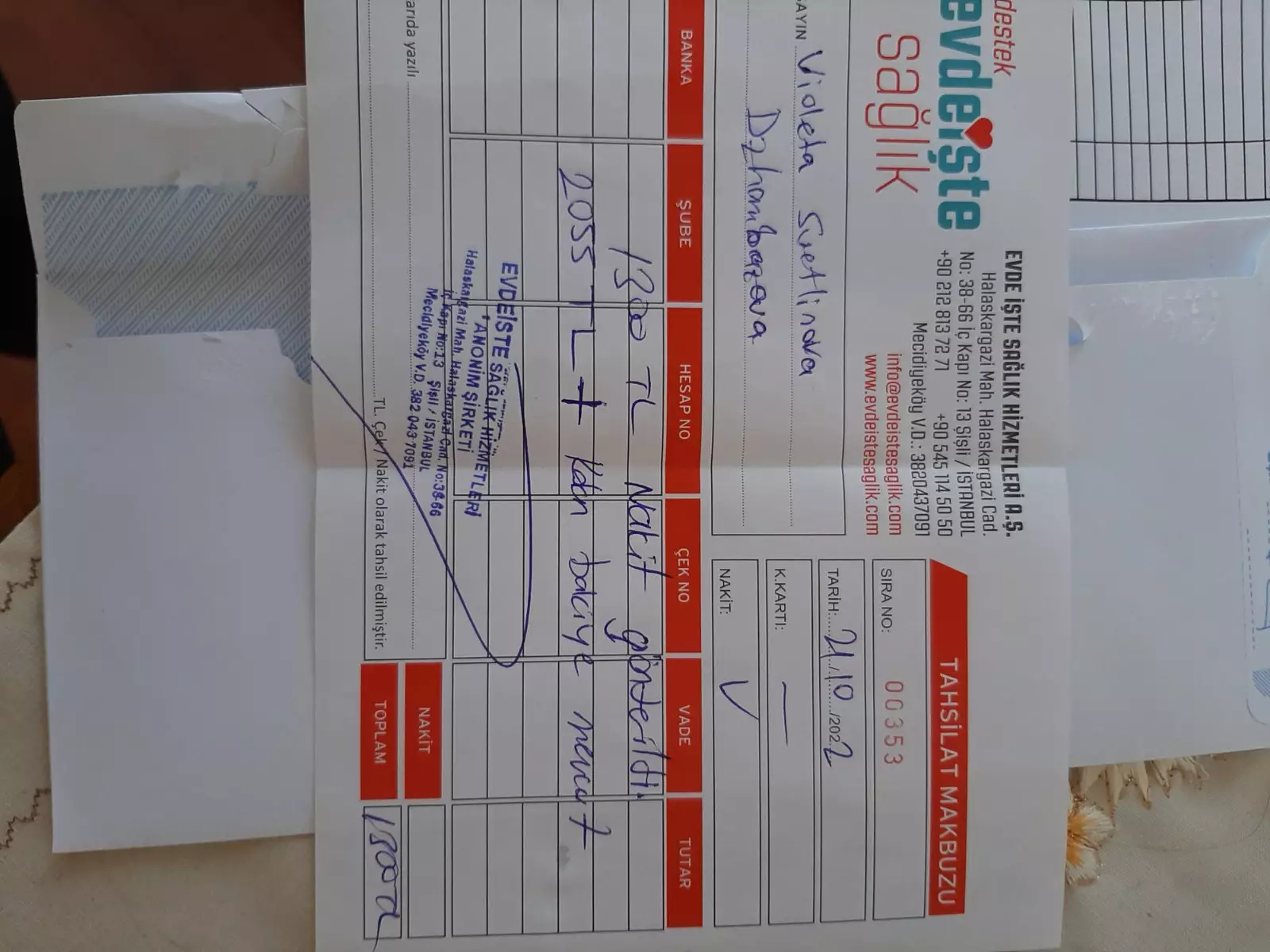 1 300 TL - наем легло + газова бутилка + кръвни изсл