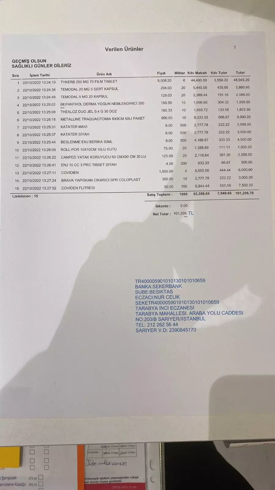 101 208,70 TL - Medicines and medical supplies