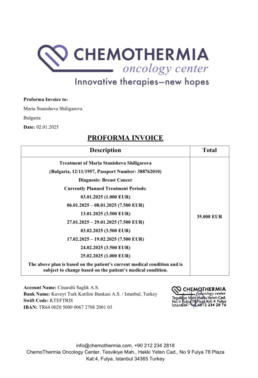 Until then, we will keep praying for a financial miracle - to raise the 30,000 euros needed to pay whatever is needed to the clinic in Istanbul.