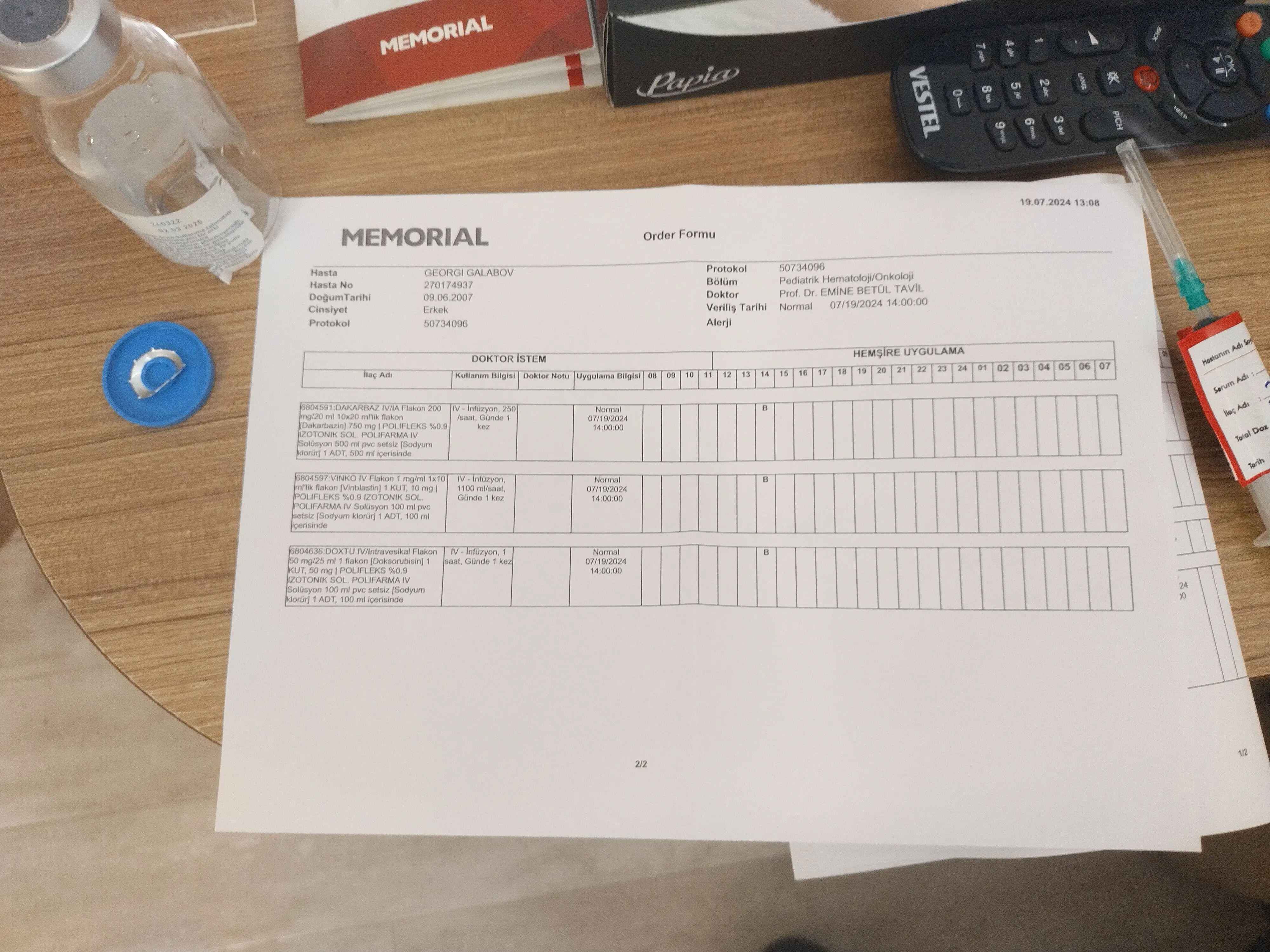 На края на петата химиотерапия, Георги се чувства добре. Прегледа при д-р Тавил мина, много е доволна от пет скенера и кръвните показатели продължаваме да се борим , оставят още две вливки, а след това 10 лъчетерапия. Ще продължим с инжекцията за разреждане на кръвта защото вената която се възпали на четвъртата химиотерапия все още е подута и чувствителна, също така ще продължим и с лекарствата които ни е изписала за страничните ефекти. Отслабнал е малко и трябва да си върнем килограмите. Много е чувствителен към всякакви миризми особенно тук в залата за химиотерапия, за това е със запалка на носа и устата.