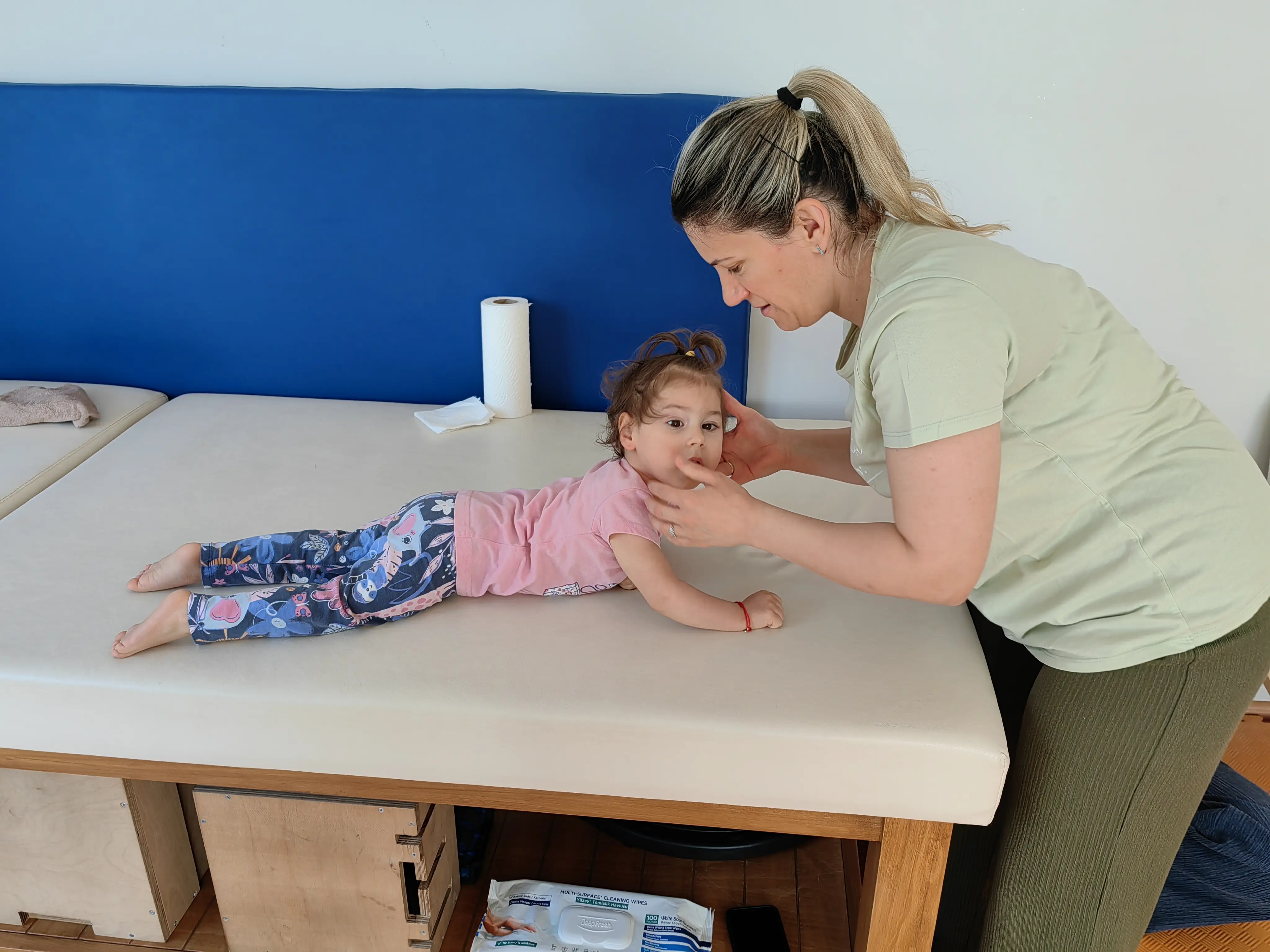 Hello dear donors Dalia is in Turkey( Istanbul ) since Sunday evening and for 3 days we are working very hard on the Medek Method with Sema Ahmed and the other rehabilitator Mert , now that she is actively doing all the exercises we see a huge difference since March ☺🤗😇We are very happy the child is really more stable in the back and neck , has faster reactions 💪We are extremely pleased such a quick result we have not seen from any therapy so far ,Thank you from the bottom of our hearts and souls for this tremendous support 🙏❤Dahlia after botox was with temporary splints on the legs and today came a guy from a Turkish company (orthopedist) to take sizes for new splints , because although we have botox in the lower legs , because of the Babinski reflex legs are quite spastic and without splints with which the child to sleep will not hold the action in the legs and spasticity will increase .We are waiting for the proforma for the splints and will release it soon for payment 🧡God bless you 🙏